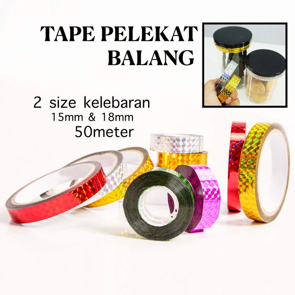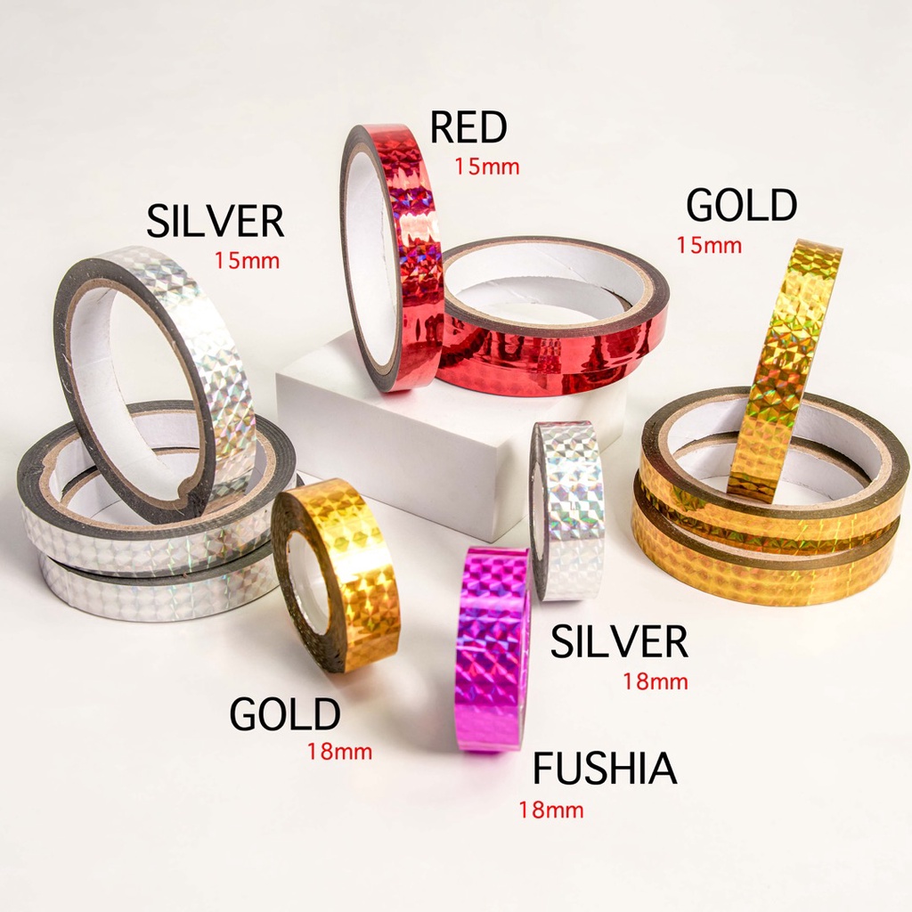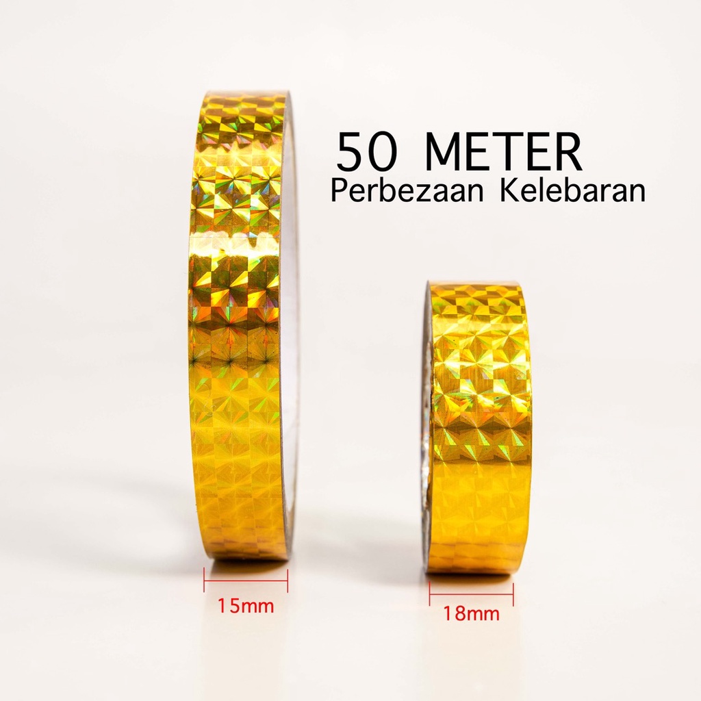 50M 15mm/18mm Shiny Wrapping Laser Tape | Plain Laser Tape Hologram Silver and Gold Jar Tape / Tape Pelekat Balang Kuih