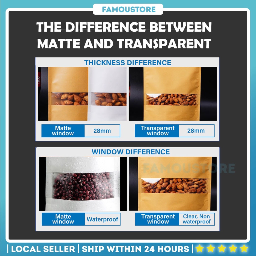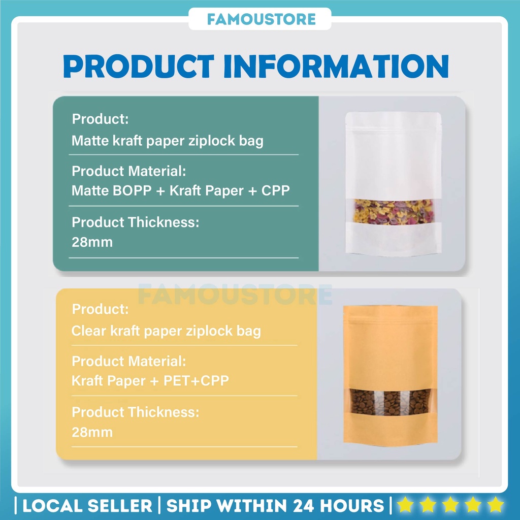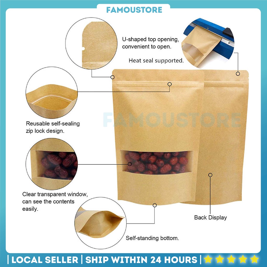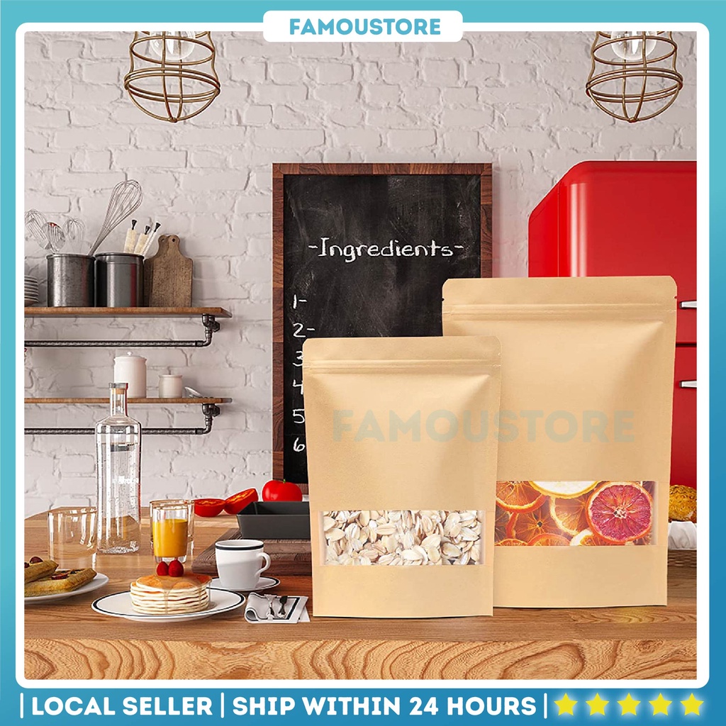50PCS Kraft Paper Zip Lock Bag Food Resealable Packaging Paper Bag Doorgift Waterproof Cookies Bakery Pocket Beg Kraft
