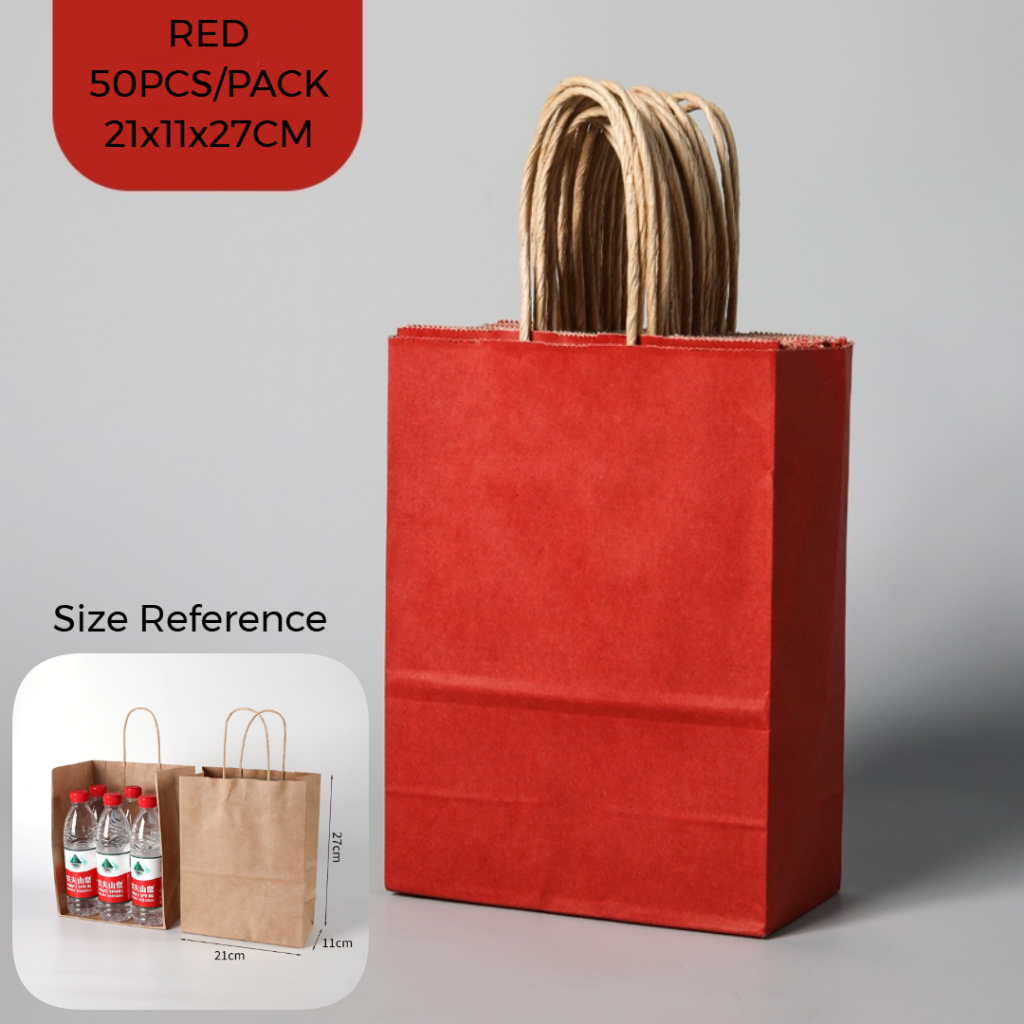 50PCS Paper Bag Doorgift Bag Goodies Bag Kraft Paper Bag Birthday Wedding Door Gift Beg Goodies Kahwin