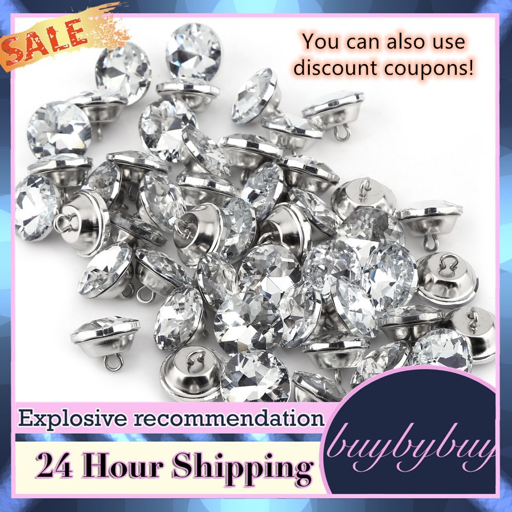 50Pc Crystal Diamante Rhinestone Round Buttons Upholstery Headboard Sofa Cloth