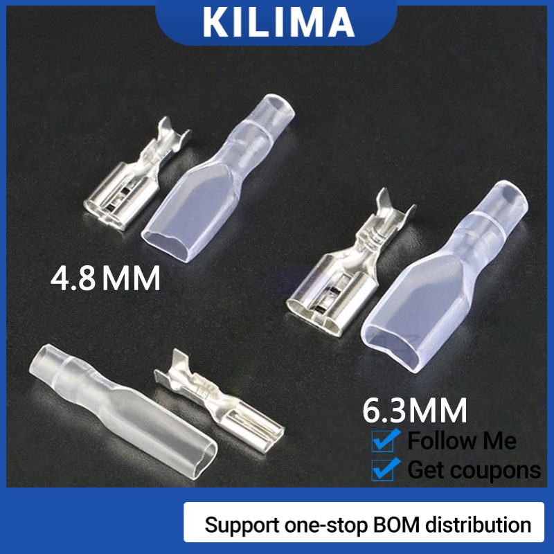 50Pcs Female Spade Connector 2.8 /4.8 /6.3 Crimp Terminal with Insulating Sleeves For Terminals 22-16AWG