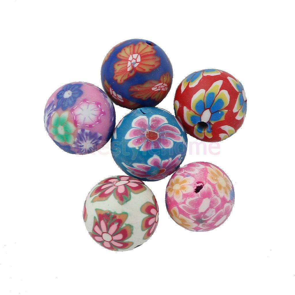 50Pcs Floral Fimo Polymer Clay Round Beads Charms for DIY Jewelry Making