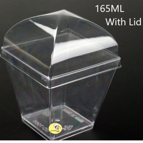 50Pcs/Pkt Code.J24 / 165ml Square Jelly Mousse Cup With Lid Disposable Tiramitsu Jelly Pudding Cup Ice Cream Dessert