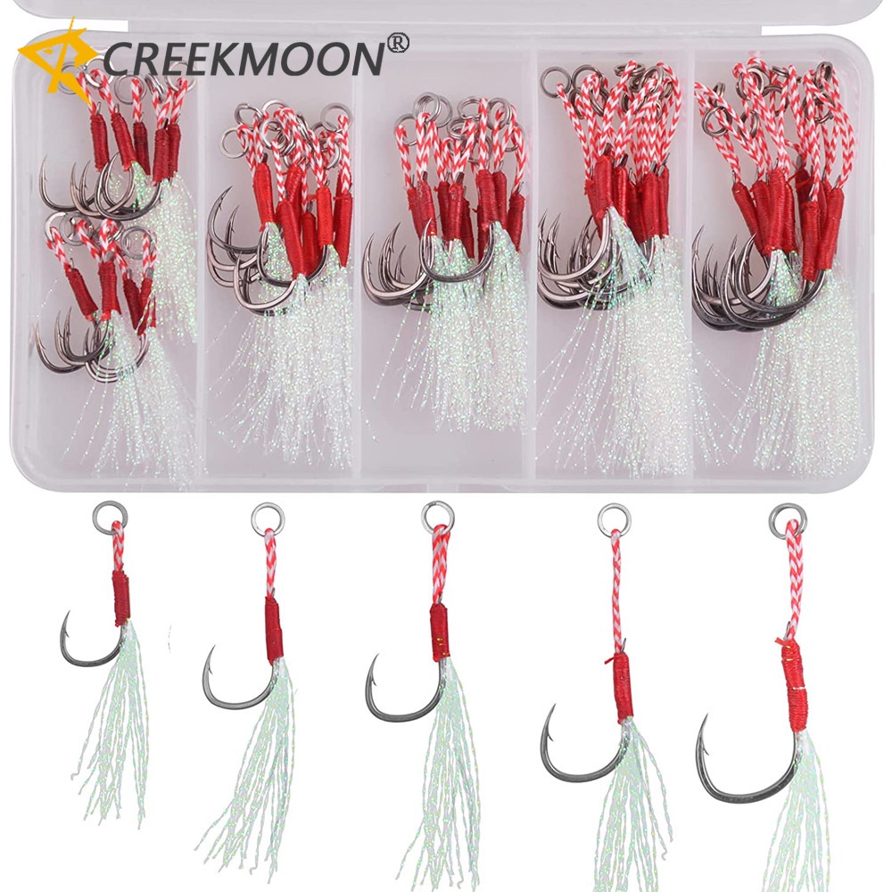 50Pcs assist hooks for slow jigging Metal Jig Barbed Hook Tying Up Fishhook With Teaser Feather Saltwater fishing hook set 11#-17#