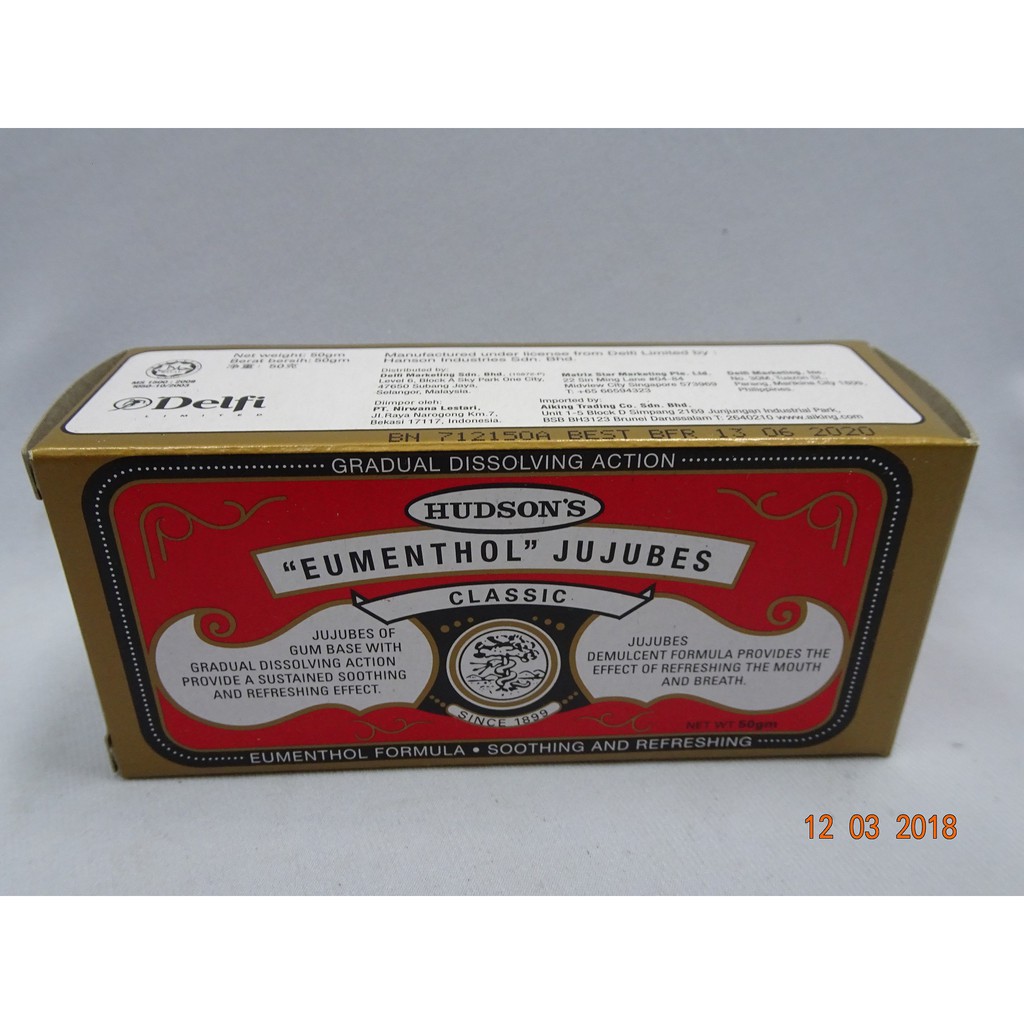 50g Bottle Hudson's Eumenthol Jujubes Honey Lemon / Classic Original / Fresh Mint Candy Hudson Hudsons Jujube
