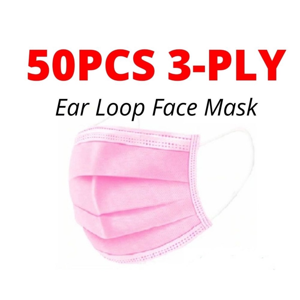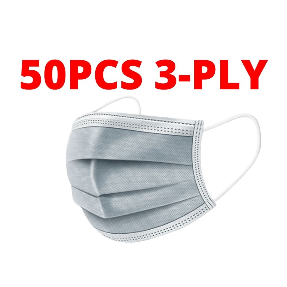 50pcs 3-PLY Disposable Earloop Face Mask Flu Protection, Pollution, Dust, Haze, Germs and Pollen 3ply