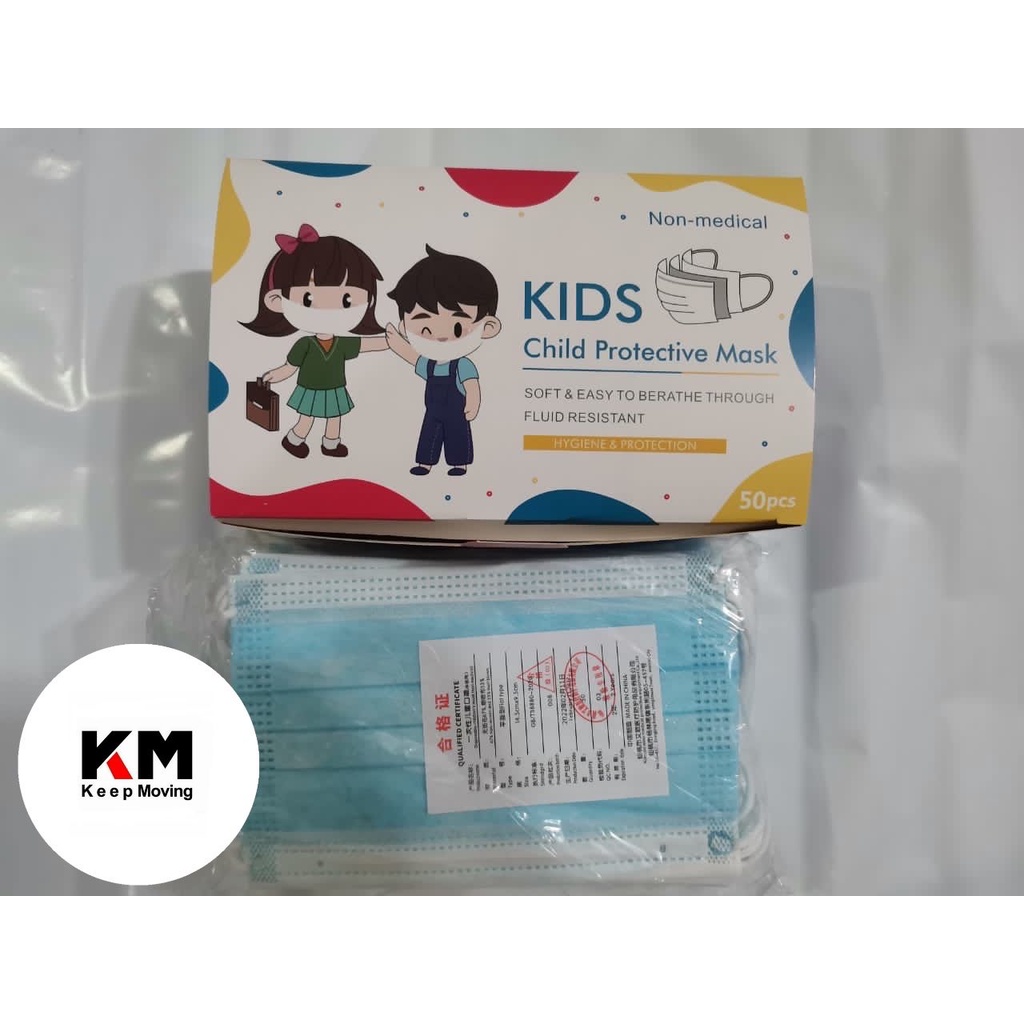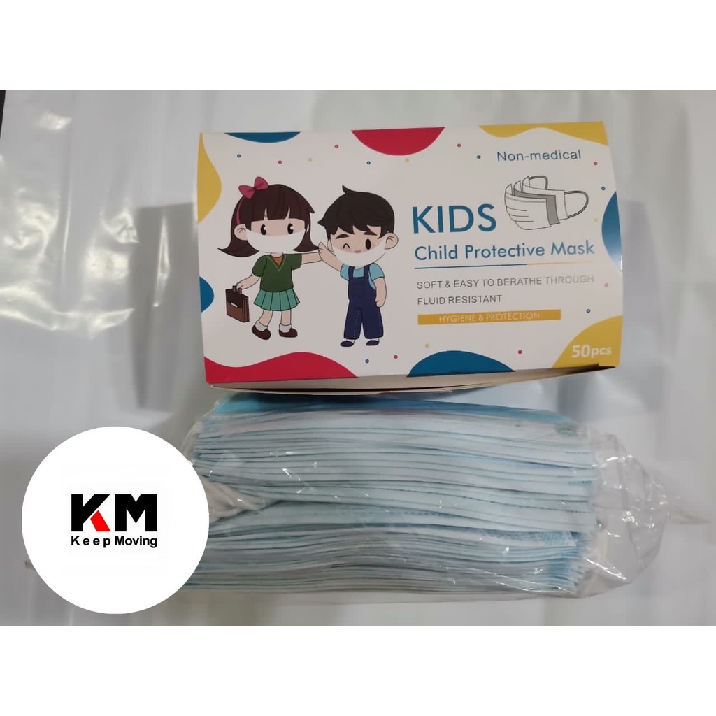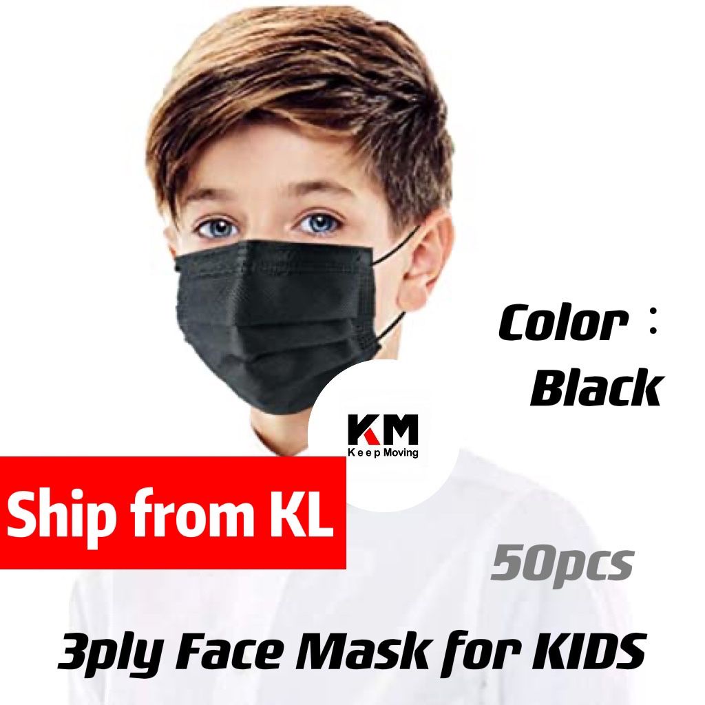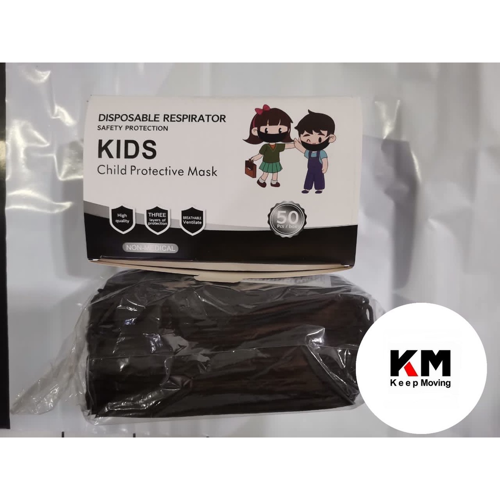 50pcs Blue / Black Disposable Kids Face Mask Children 3-Ply Filter Dust Breathable Safety Mask Budak
