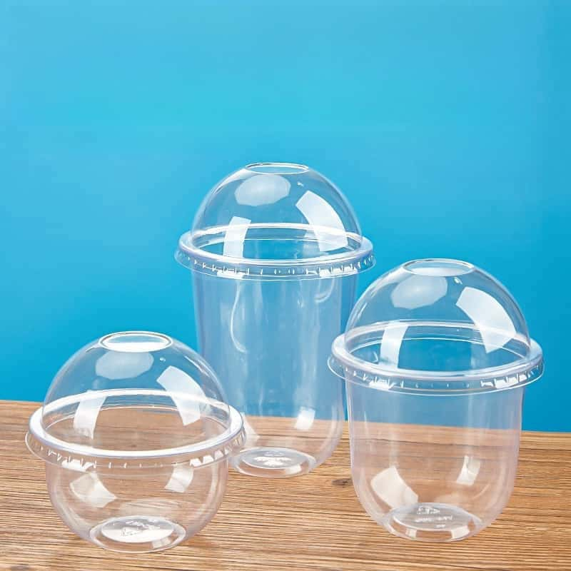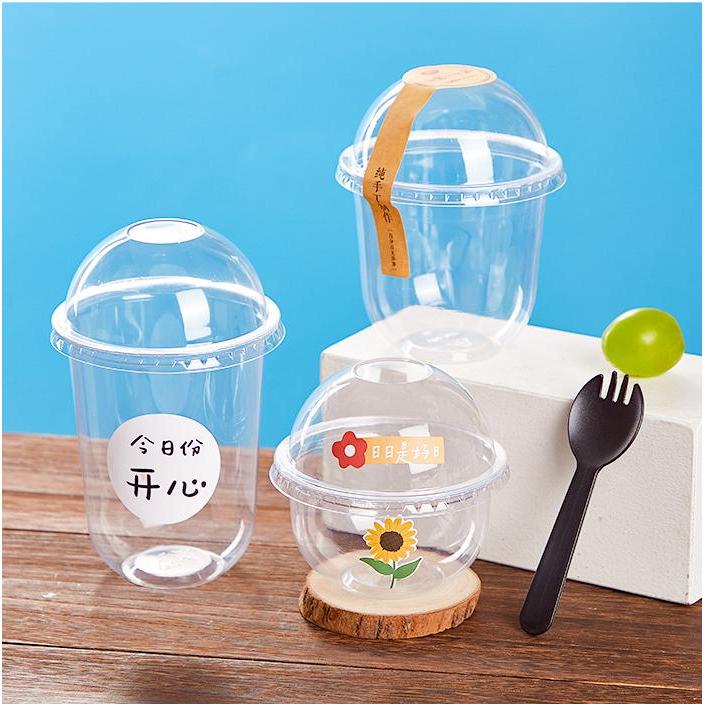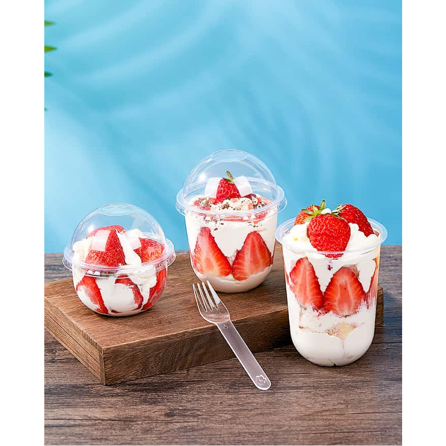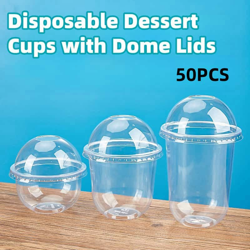 50pcs Disposable Halo-Halo Cups with Dome Lids, Clear, Durable, Perfect for Beverages and Desserts