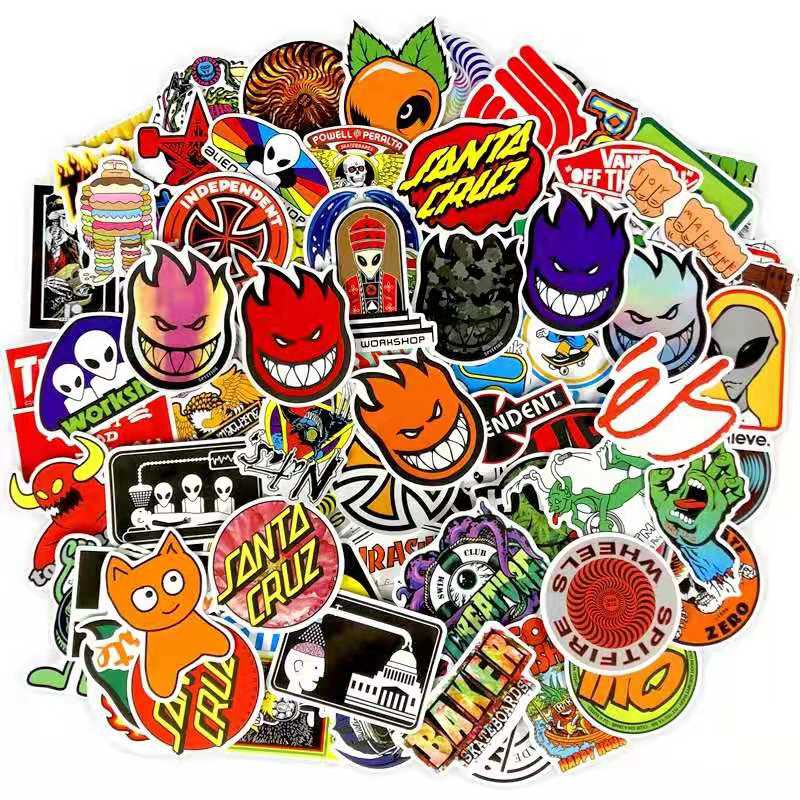 50pcs Independent skateboard spitfire skateboard Hello kitty BONES GIRL BAPE TOYMACHINCE ZERO DEATHWISH SANTRCRUZ SKATEBOARD STICKERSSkateboard stickers