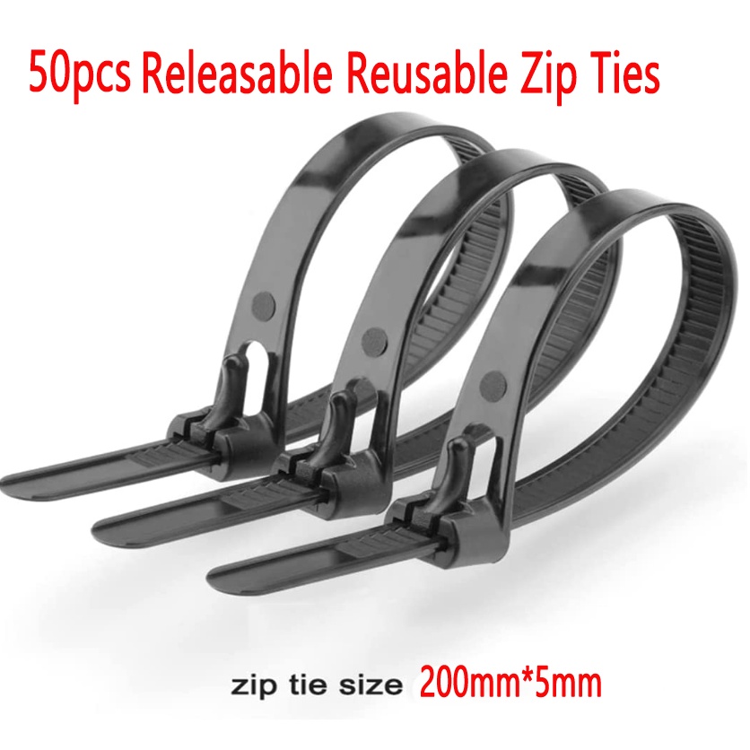 50pcs Releasable Reusable Zip Ties Heavy Duty Zip Tie Thick Black Cable Ties Reusable Tensile Strength Nylon Cable Wire Ties for Multi-Purpose Use Indoor Outdoor Plastic Tie Wire