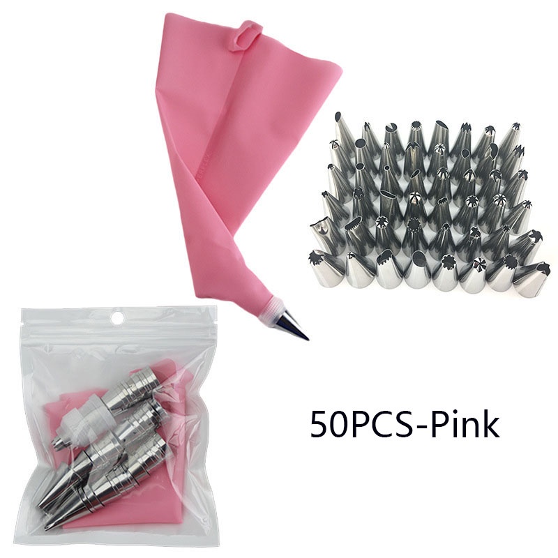 50pcs/Set Confectionery Bag With Nozzles Icing Piping Tip Stainless Steel Cake Decorating Tool Pastry Cream Spout For Baking