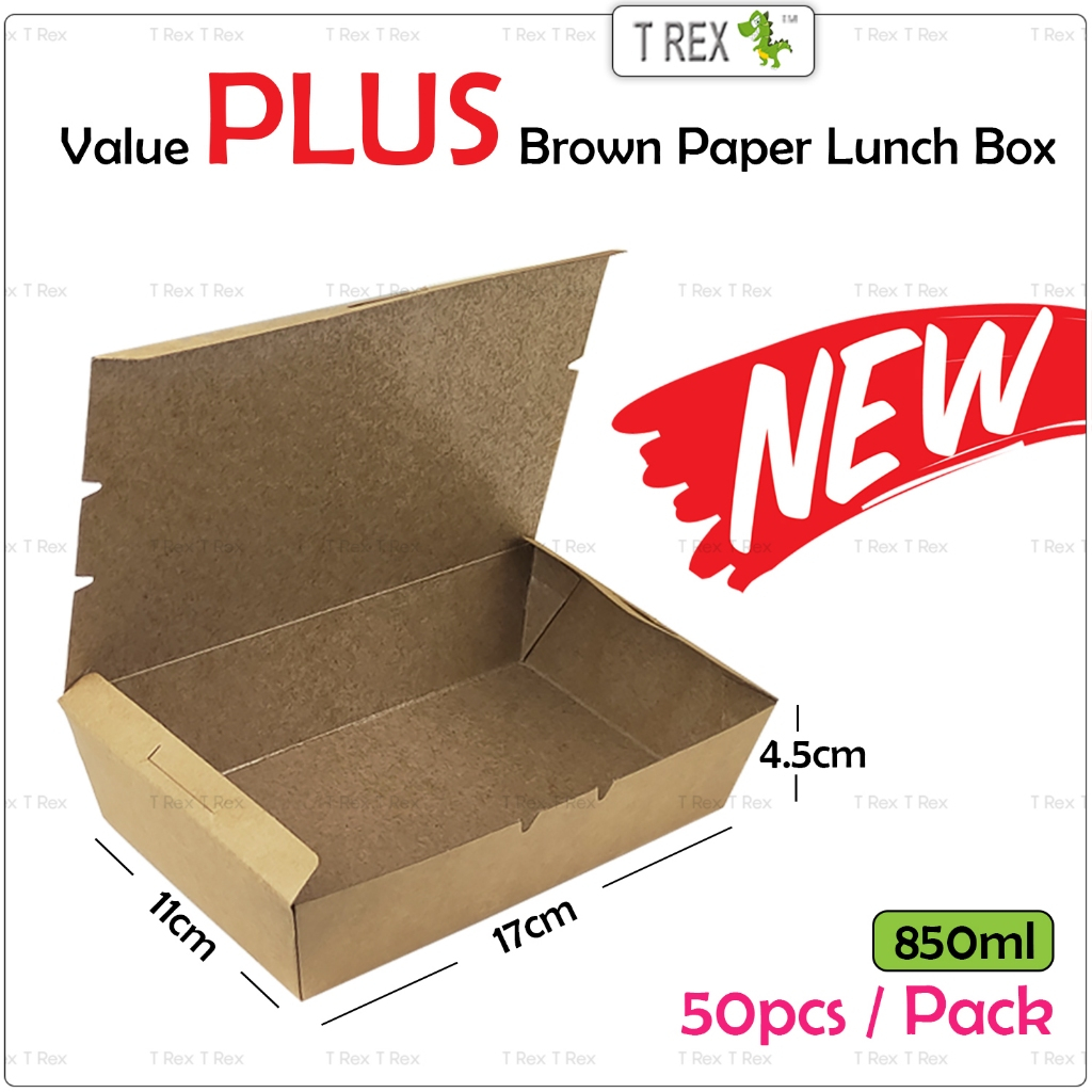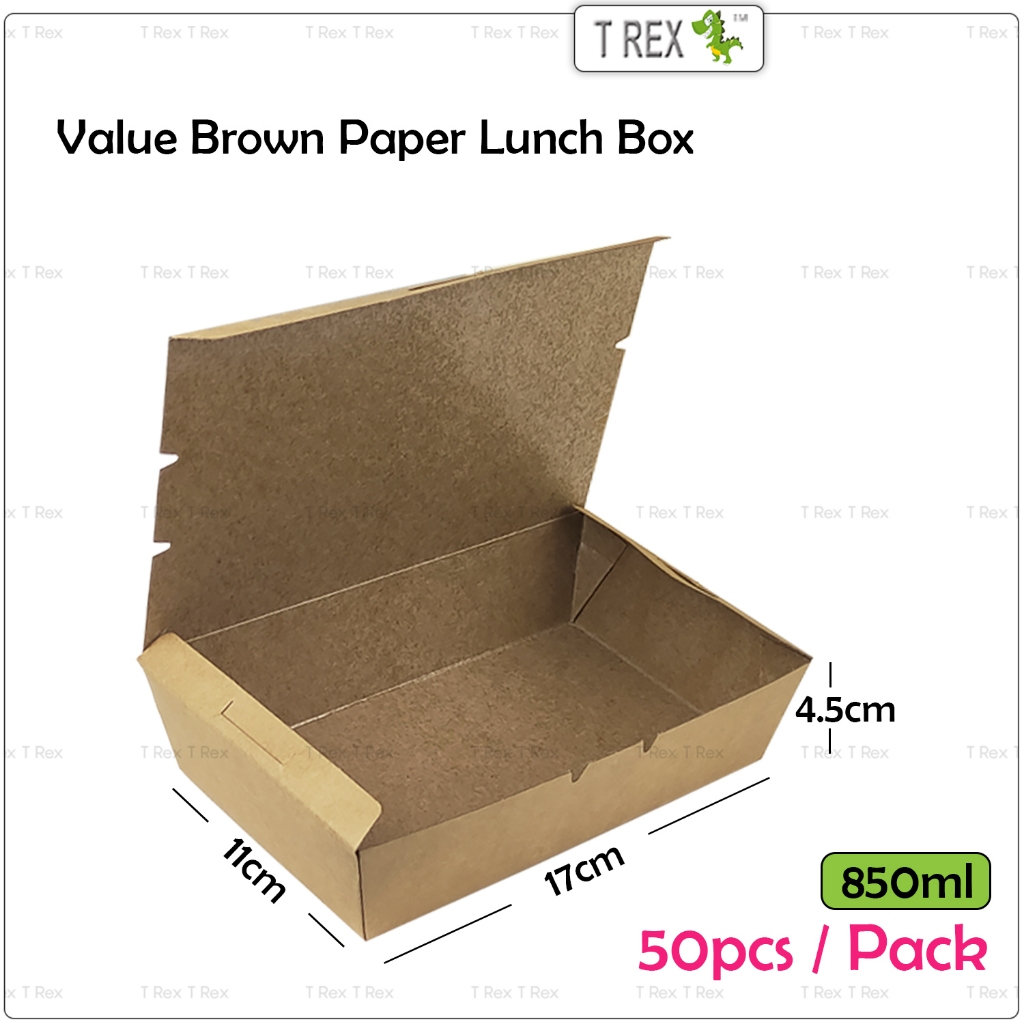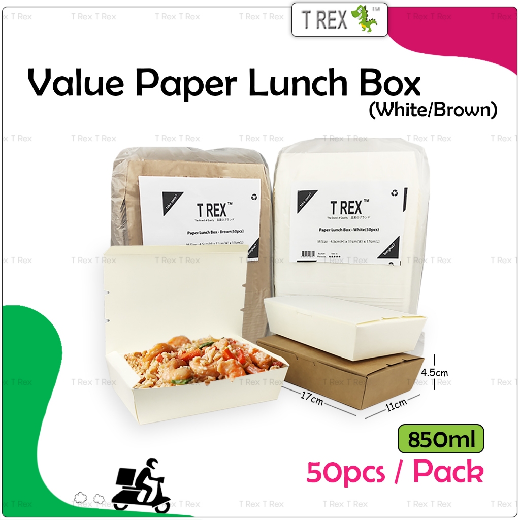 50pcs T Rex Value Disposable Paper Lunch Box / Take Away Food Delivery Paper Box /Bekas Nasi Makanan