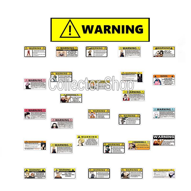 50pcs Warning Sign Anime Stickers Cute Mini labels Seatbelt Cartoon Sticker