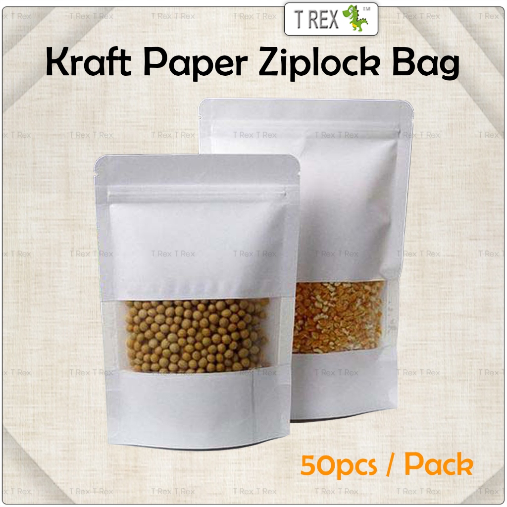 White Kraft Paper Zipper Bag with Window / Sealable Zip Lock Bag / Packaging Gift Bag / Beg Kertas