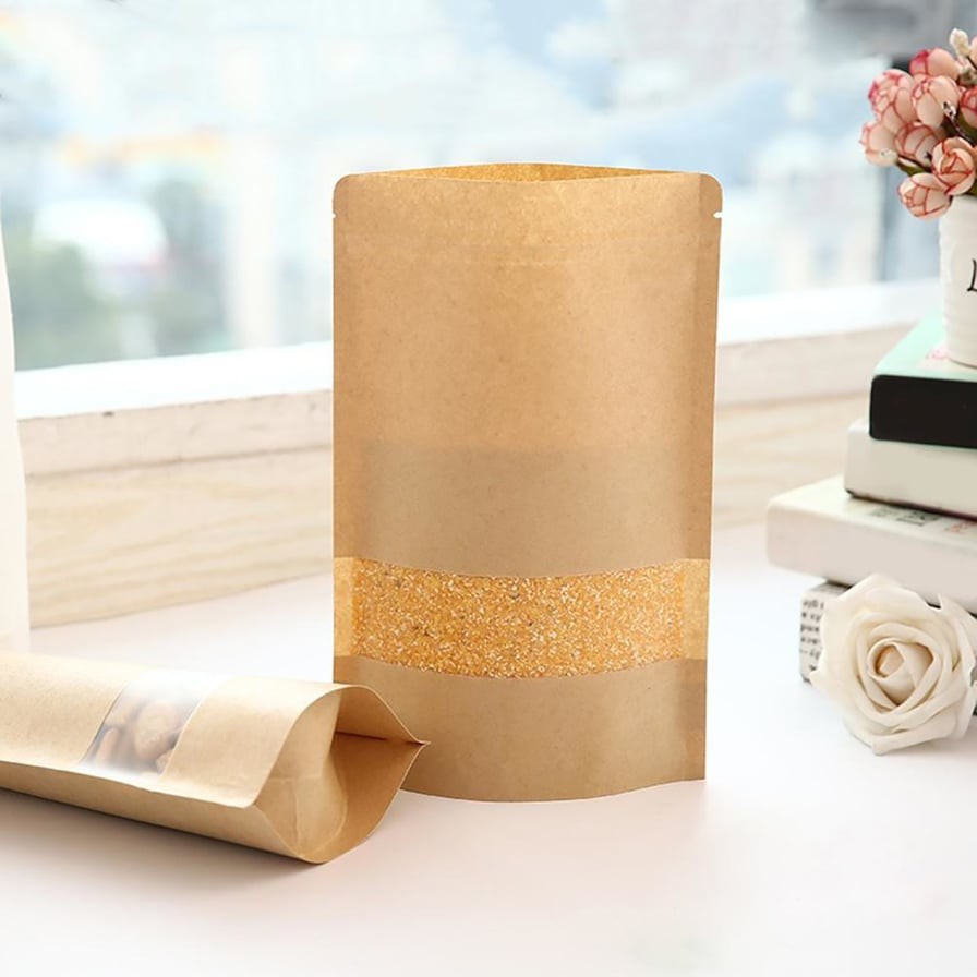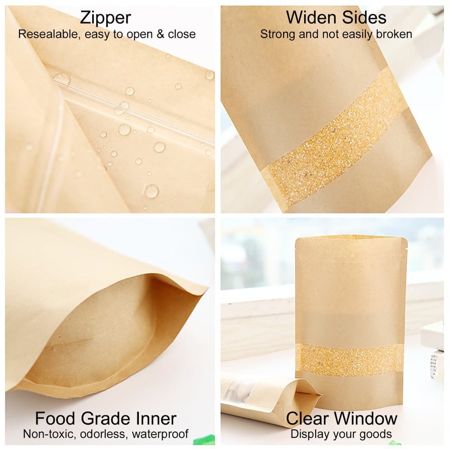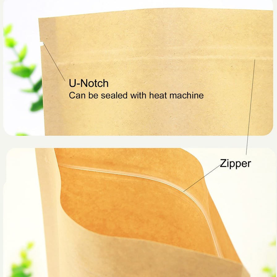 50pcs Zip Paper Zipper Bag Food Storage Packaging Bag Kraft Paper Beg Packing