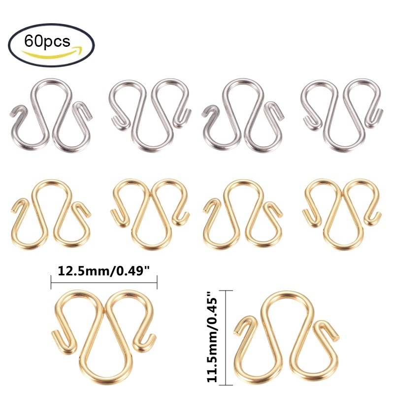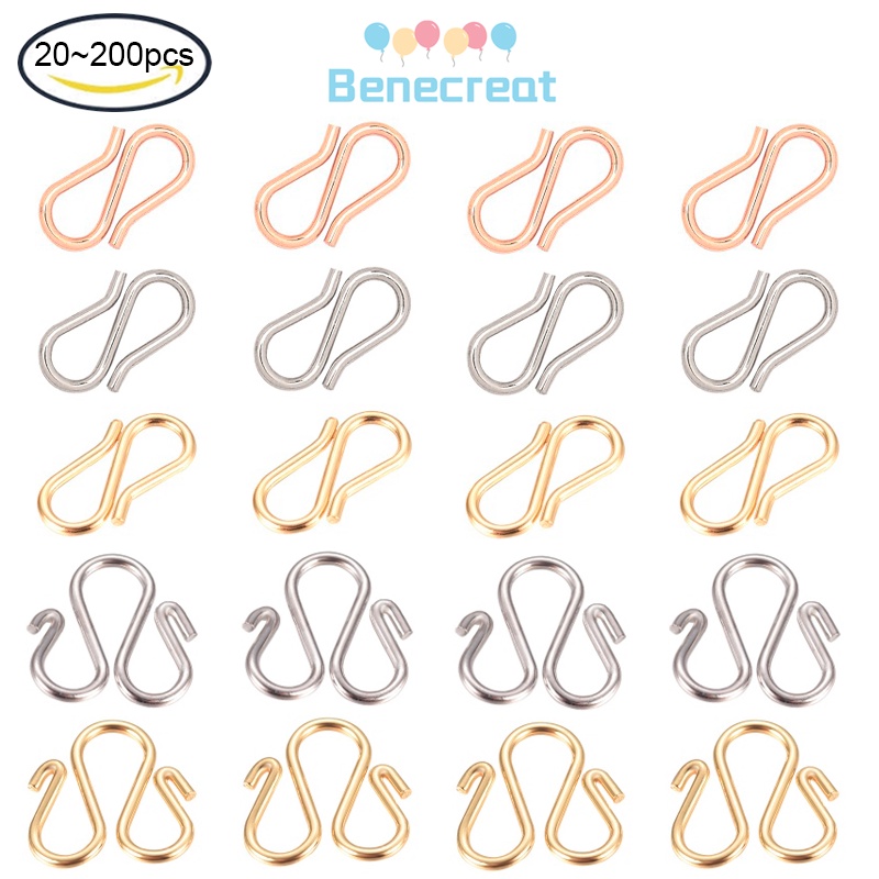 50pcs ~ 200pcs 304 Stainless Steel Hook Clasps S-Hook Clasp & M-Hook Clasp Connectors for Necklace Jewelry Making