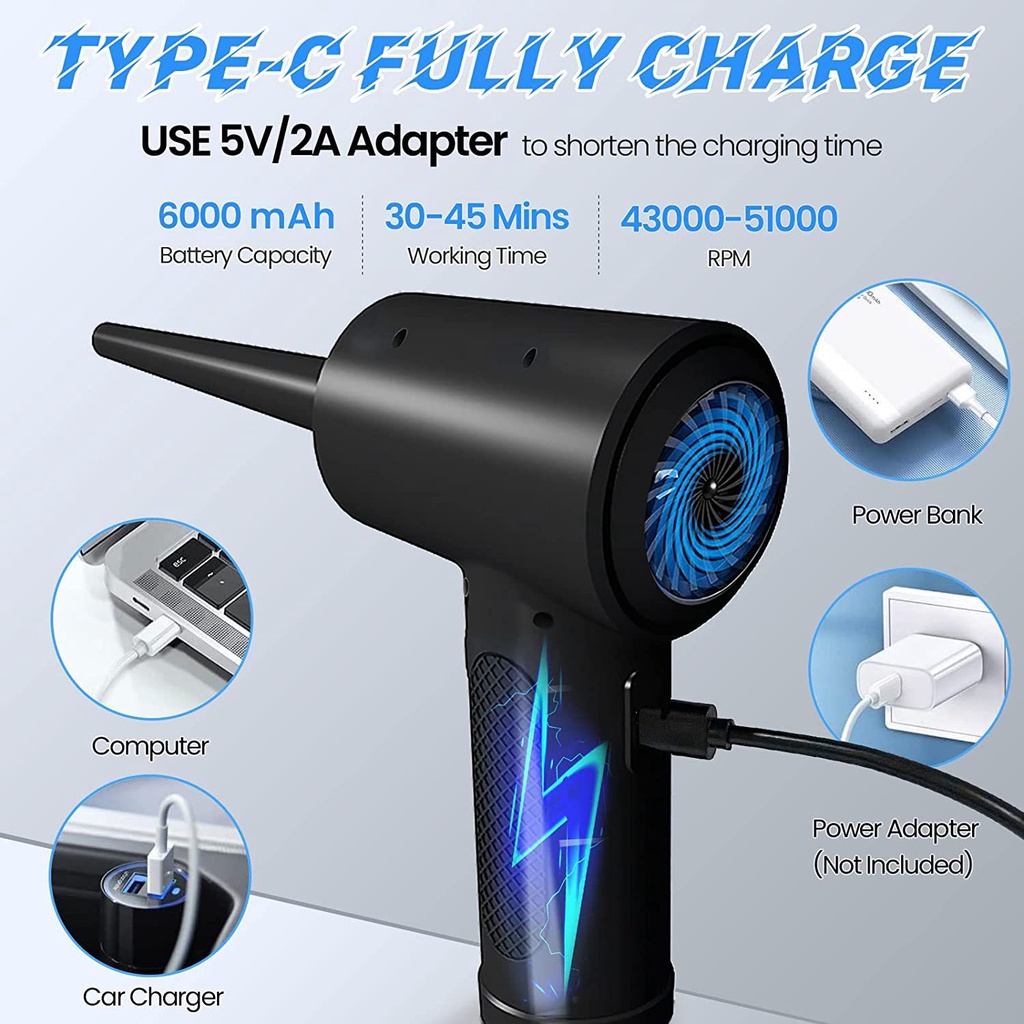 51000RPM Wireless Cordless Air Duster Blower Compressed Air Blower Electric Air Duster for Computer Keyboard Camera Cleaning Small Appliances