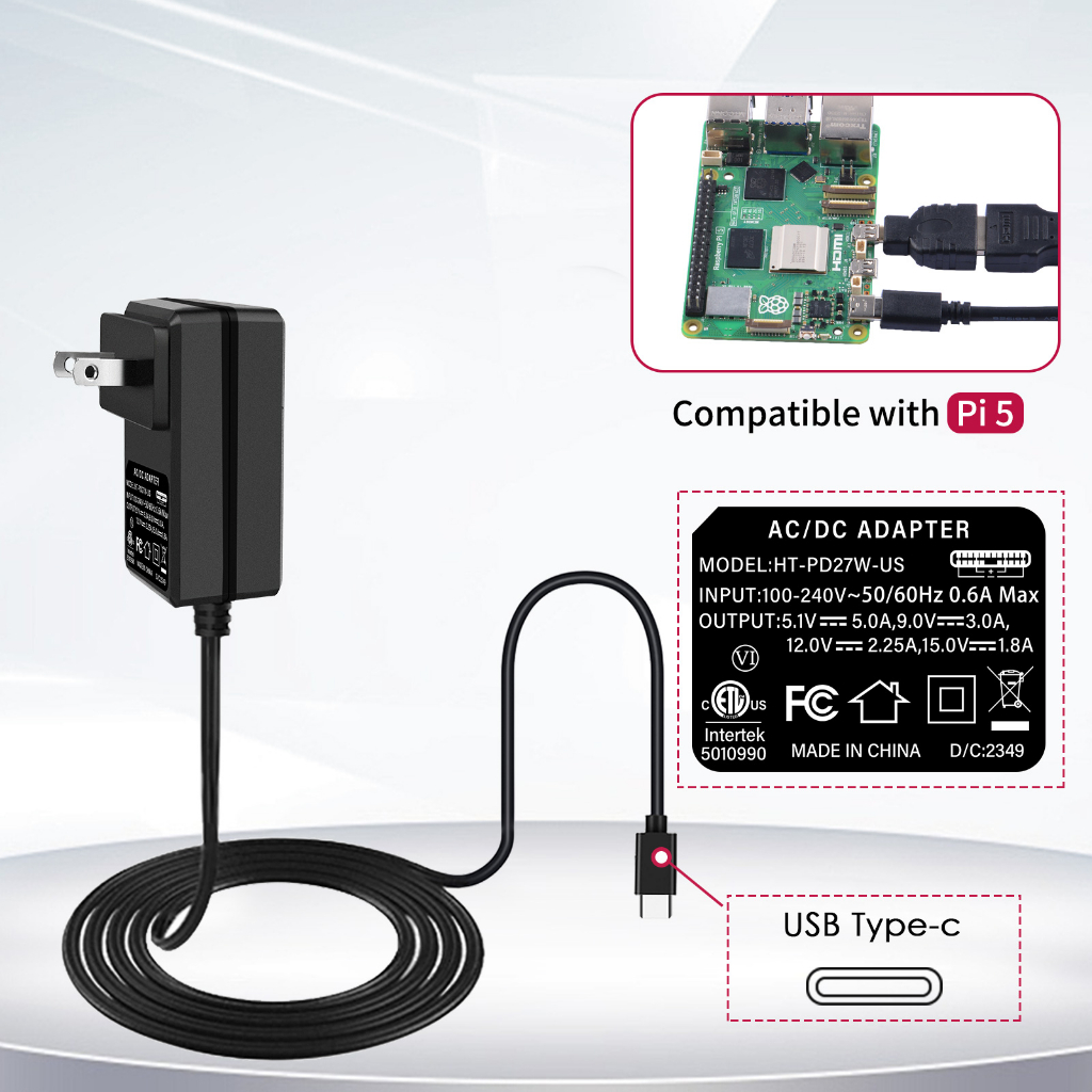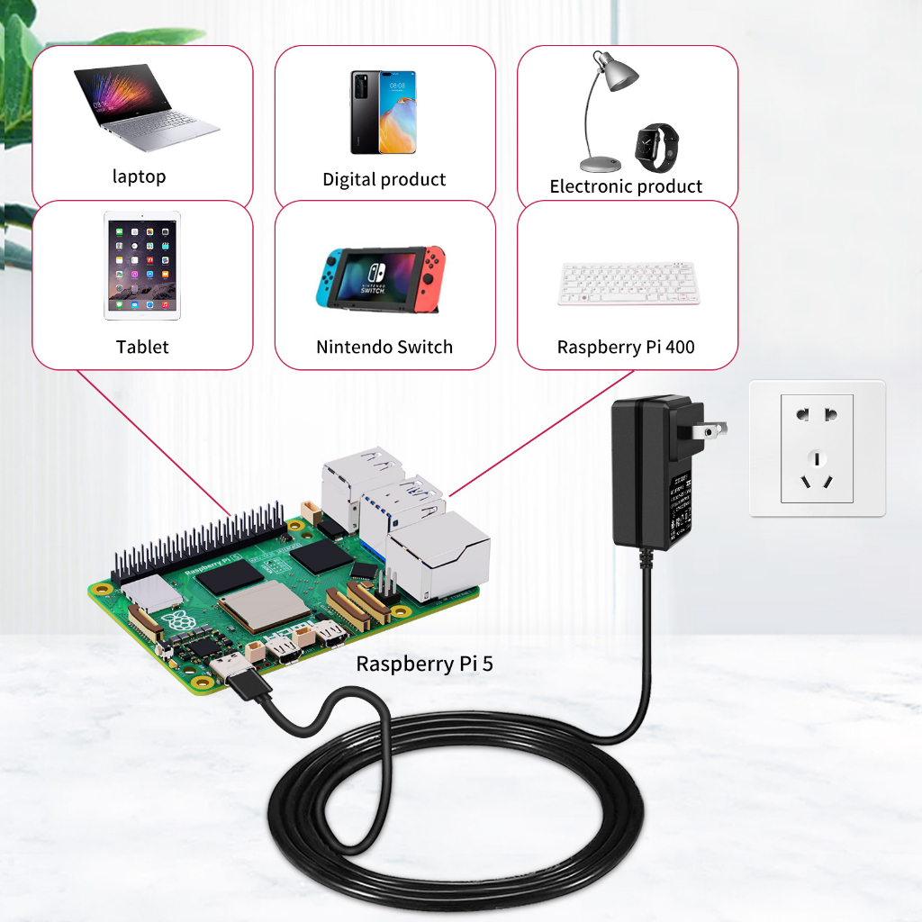 52Pi Raspberry Pi 5 Power Supply, 5V 5A USB Type-c Power Supply for Raspberry Pi 5, AC/DC Power Adapter for Raspberry Pi 5