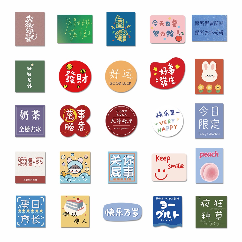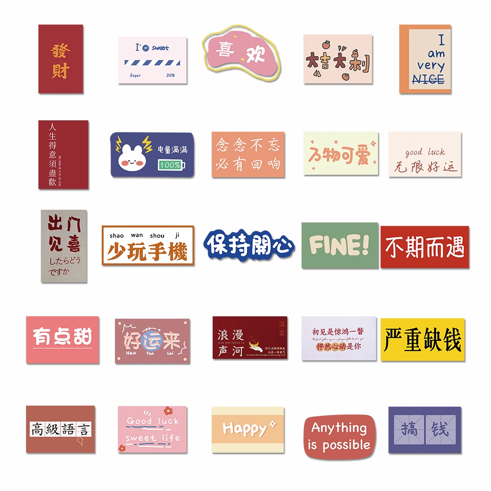 53pcs cute text stickers water cup laptop decoration waterproof stickers