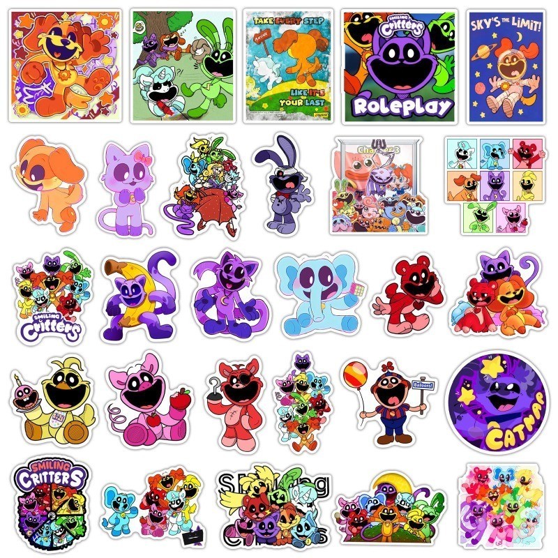 54 Pcs Smiling Critters Stickers Poppy Game 3 Kit Horror Smile Friend Anime Graffiti Waterproof Sticker Gift for Kids