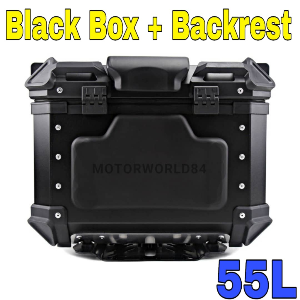 55 LITRE ALUMINIUM BOX AND TOP BOX BACKREST SILVER / BLACK BOX ALLOY
