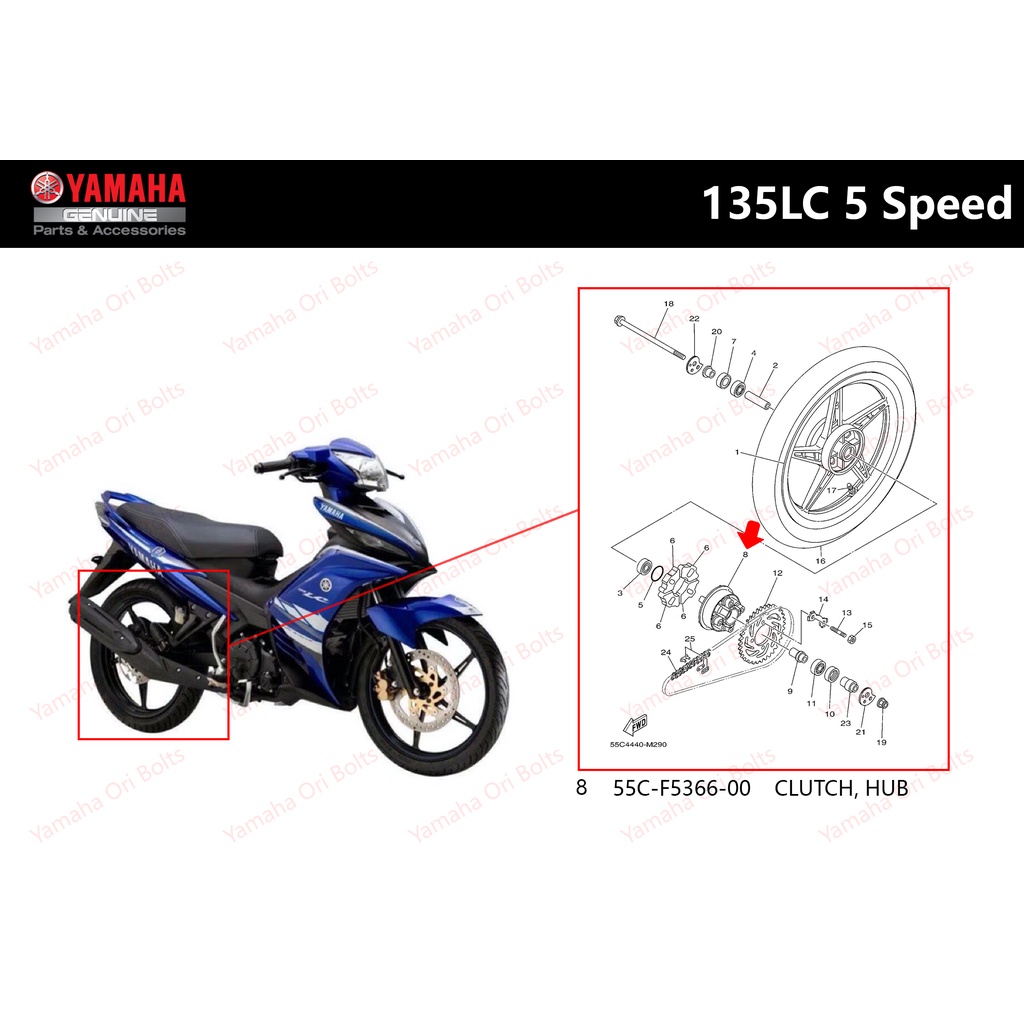 55C-F5366-00 Yamaha Original 135LC 5 Speed (2908) 5S Clutch Hub Rumah Sprocket
