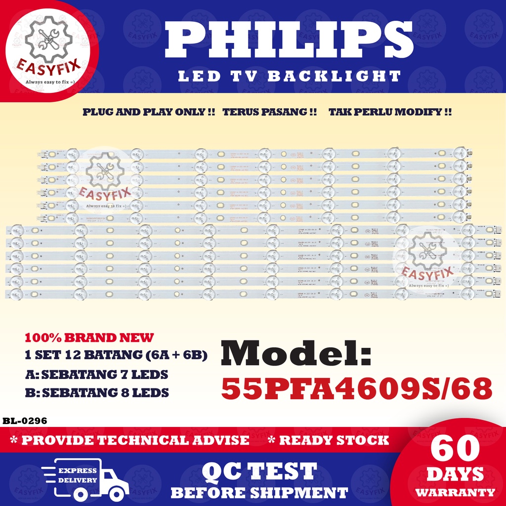 55PFA4609S/98 PHILIPS 55 INCH LED TV BACKLIGHT ( LAMPU TV ) 55PFA4609S 55" PHILIPS LED BACKLIGHT