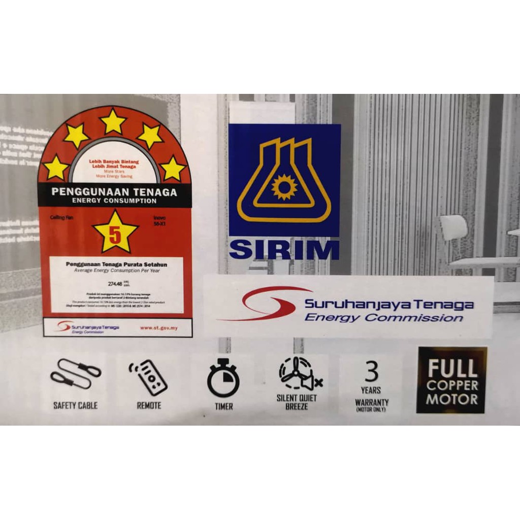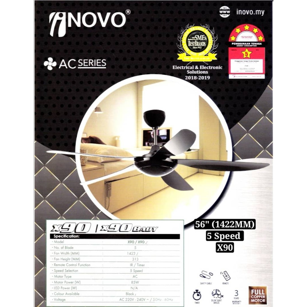 56" Remote Control Ceiling Fan (5 blade) (5 speed) (X90) (BLACK) (INOVO)