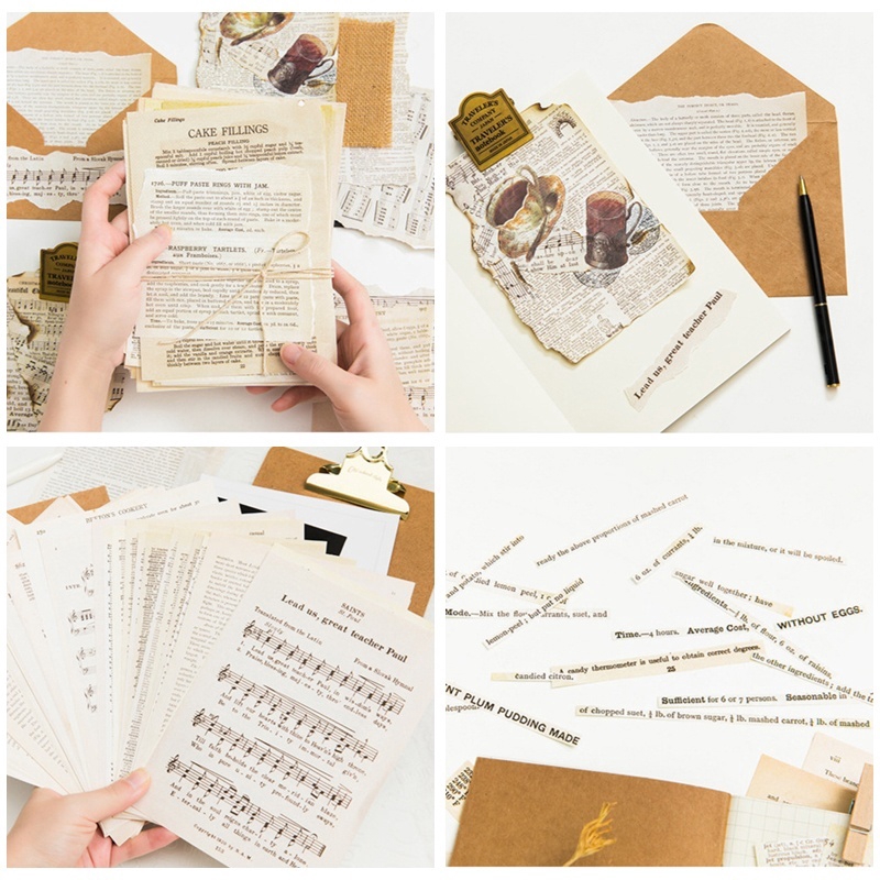 57PCS/set creative retro material paper English manuscript score diary DIY scrapbook album bullet journal decorative primer paper