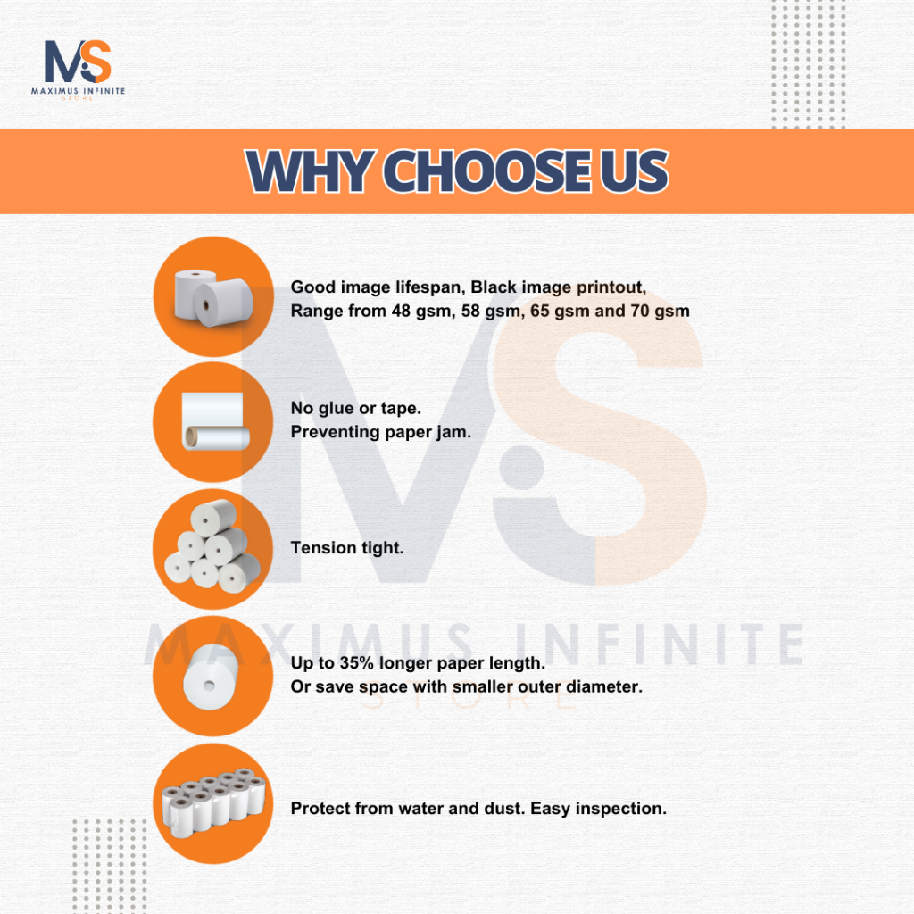 57mm x 60mm x 12mm - 100 Rolls/Box / SONO-ROLL Woodfree Paper Roll / Receipt Paper Roll / Dot Matrix Paper