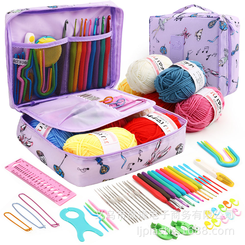 59Pcs/Set Wool Crochet Hooks Set Beginner Handmade Crafts Knitting Crochet Hooks Needle Yarn Wools Storage Bag DIY Sewing Accessories