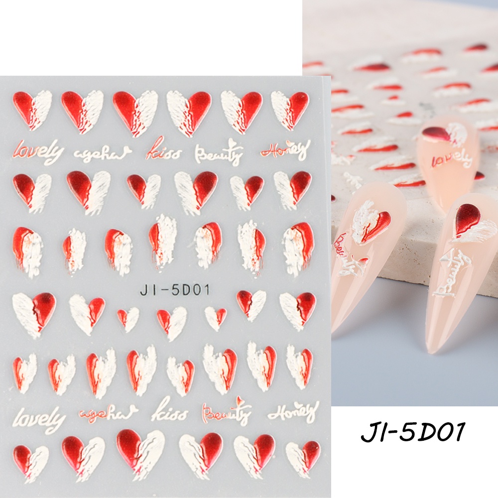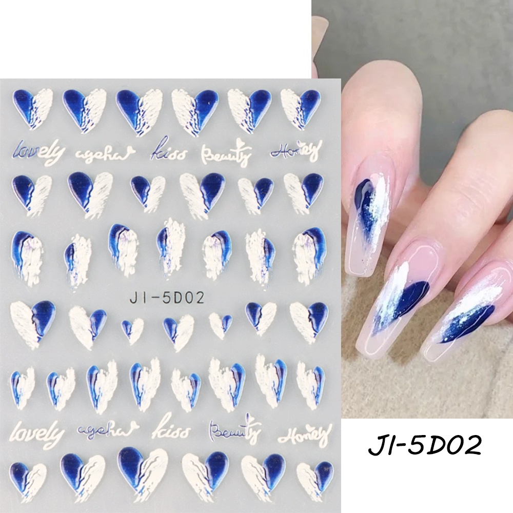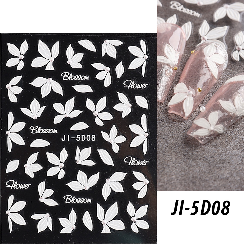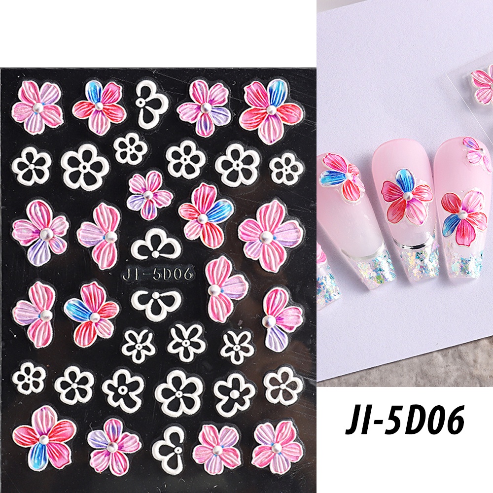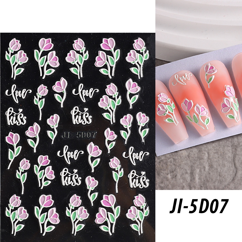 5D Nail Stickers Flowers Geometric Lines Decor Acrylic Embossed Sliders Gold Frame Nail Decals Cherry Blossom Manicure Tattoos