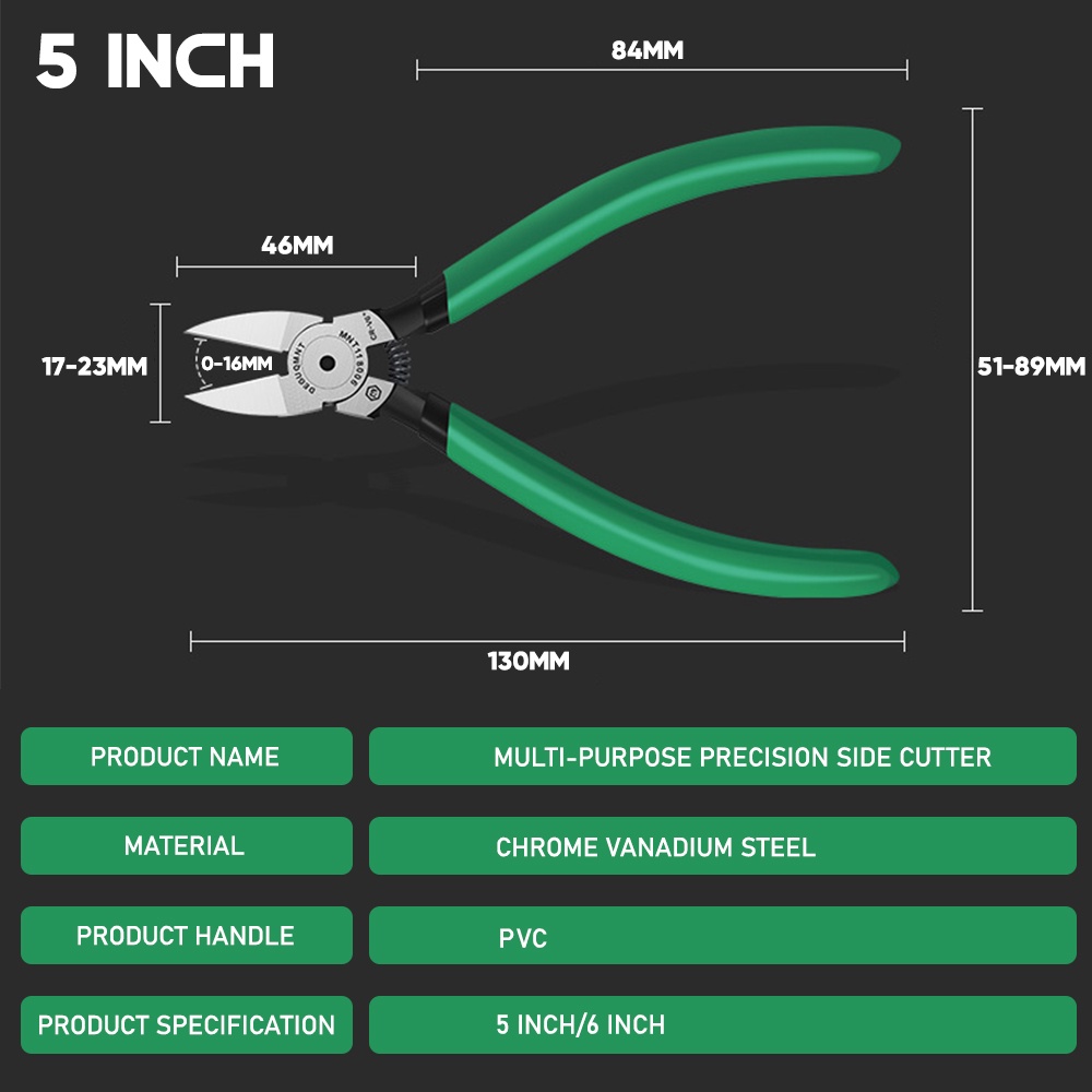 5INCH / 6INCH CR-V PLASTIC CUTTER MULTI-PURPOSE MICRO PRECISION SIDE CUTTER WIRE CABLE CUTTING TOOLS