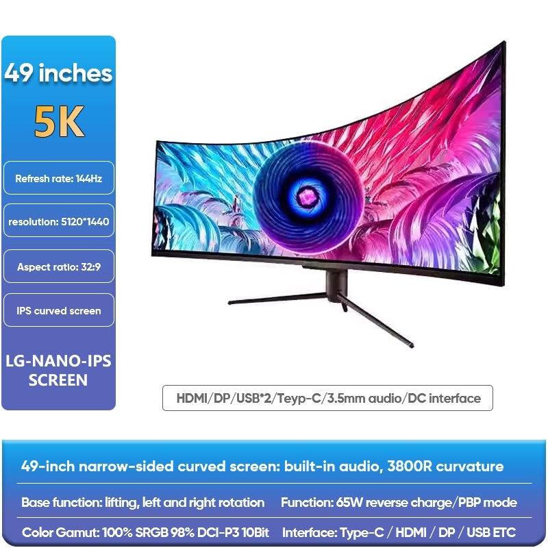 5K 49 INCH MONITOR, 144HZ/40 INCH COMPUTER MONITOR, 75HZ/GAMING MONITOR, SPEAKER/PC MONITOR, 34 INCH 4K165HZ