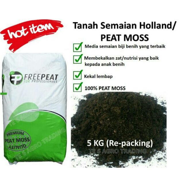 5KG FREEPEAT PEATMOSS TANAH HOLLAND TANAH SEMAIAN TERBAIK