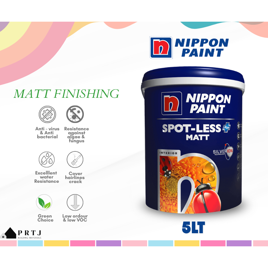 5L Nippon Paint Spot-less Plus Matt Finishing / Interior Wall / Cat Dinding Dalam [ANY COLOR, CODE]