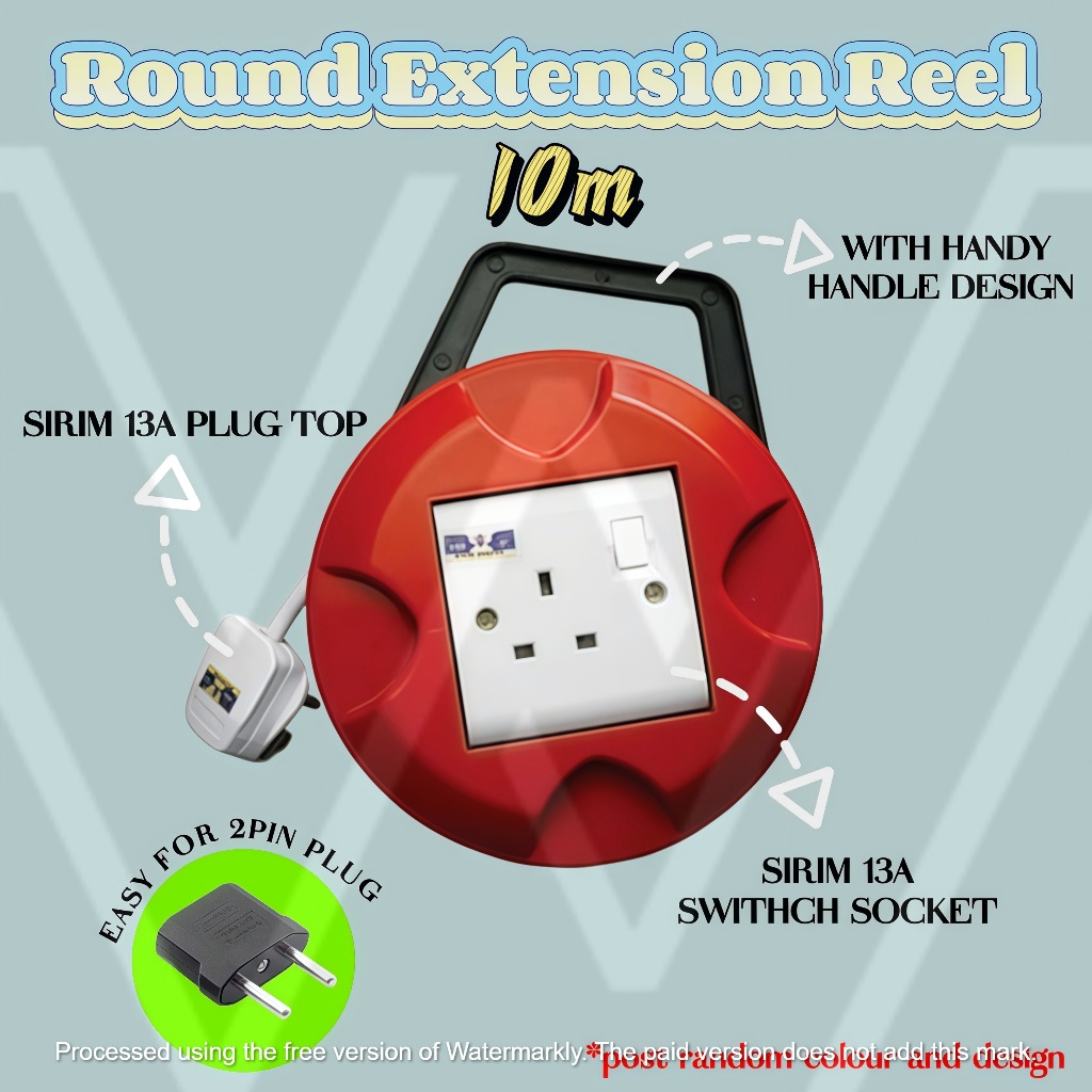 5M 7M 10M Round Extension Box Wire (SIRIM) - Cable Reel Portable Round Trailing Socket Cable Box