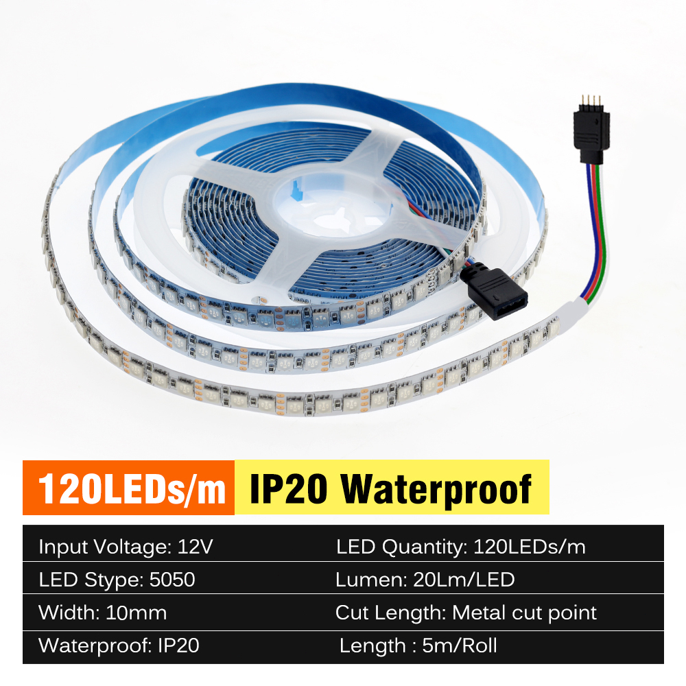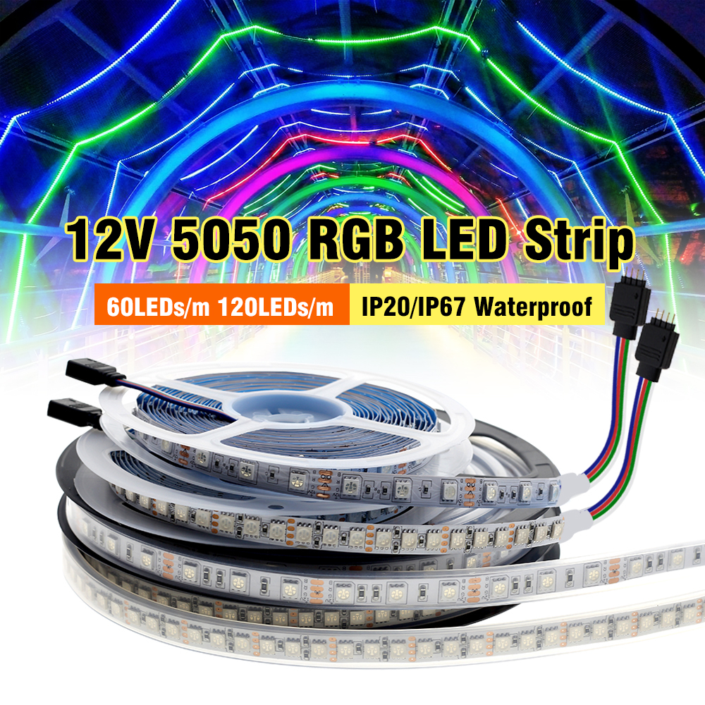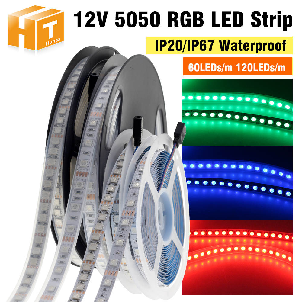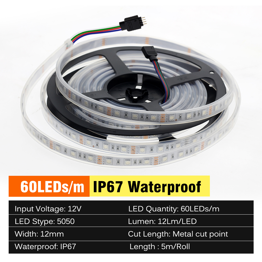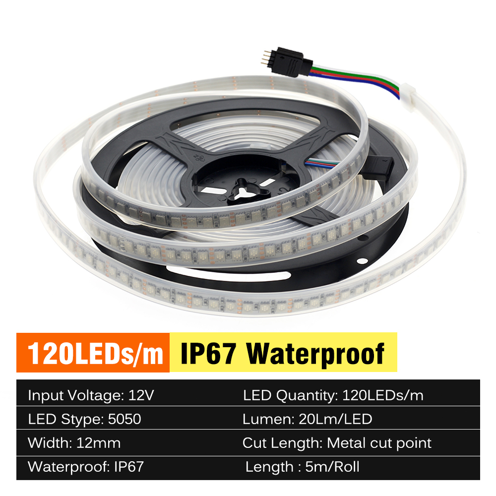 5M RGB LED Strip 5050 DC12V LED Light Strip 60LEDs/m 120LEDs/m IP67 waterproof Flexible Ribbon Stripe Lampu Led RGB