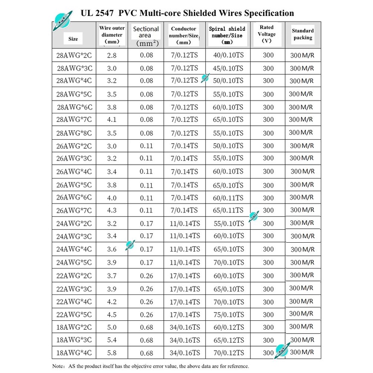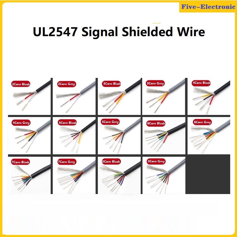 5M UL2547 Signal Shielded Wire Cable 22 24 26 28 30 AWG PVC Insulated 2 3 4 5 6 7 8 Cores Shielded Wires Tinned Copper Cable Multicores Shielded Line