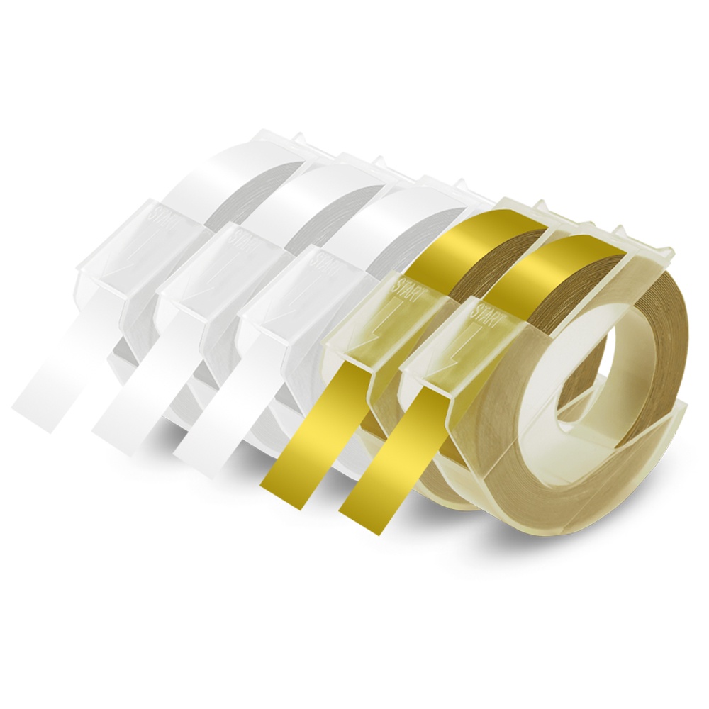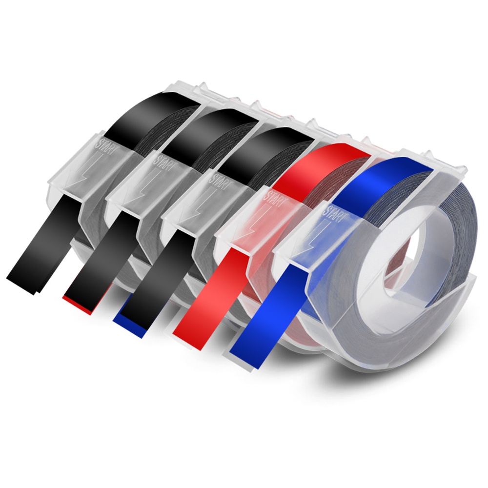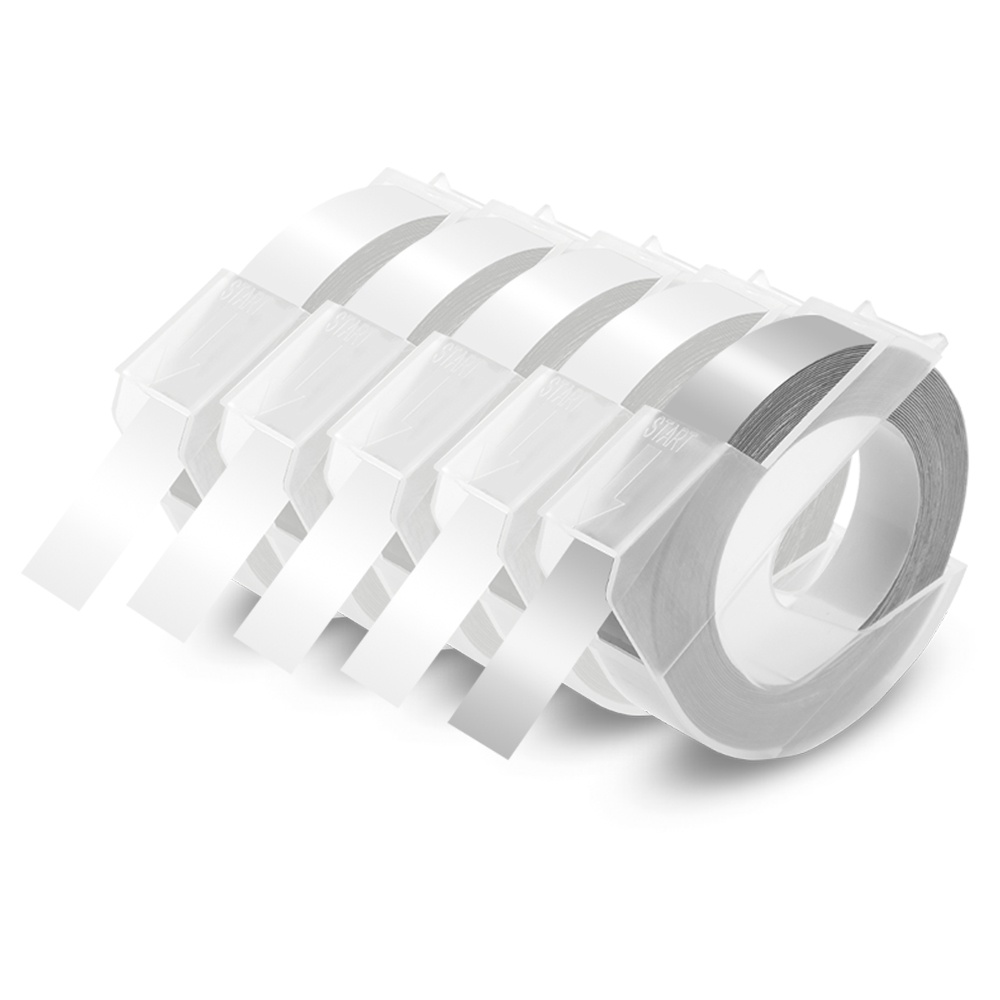 5PCS Compatible Motex / Dymo Embossing Tape Refill 3D Label Tape 9mm x 3m for Dymo Embossing Label Maker Manual 12965 Organizer Xpress Junoir Embosser 1880 1610 Motex E-101 E-303 Embossing Printer