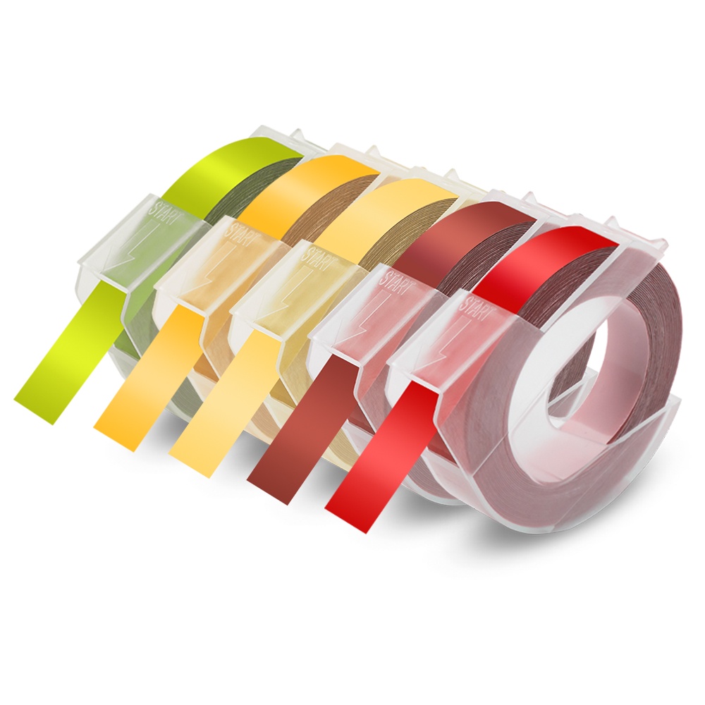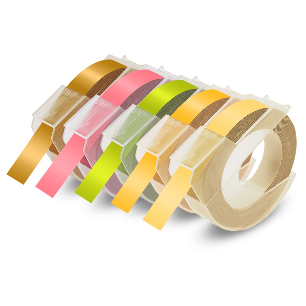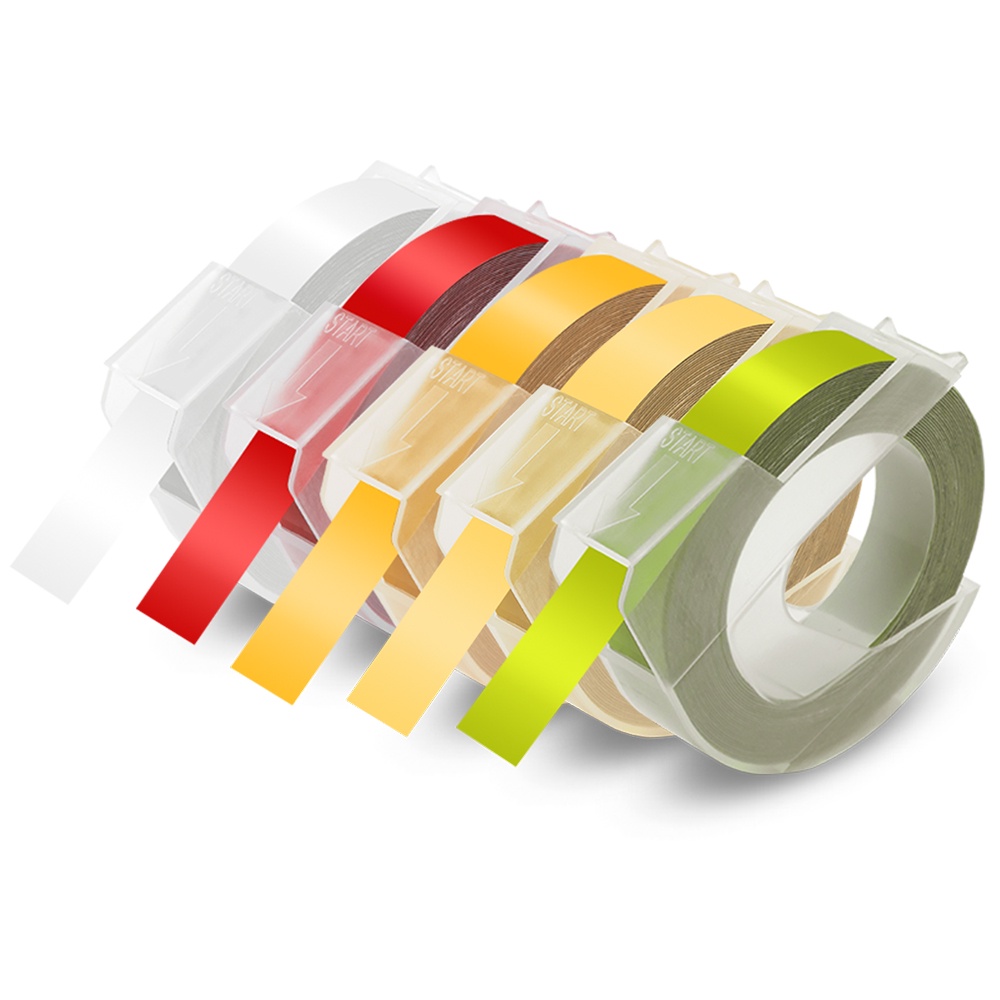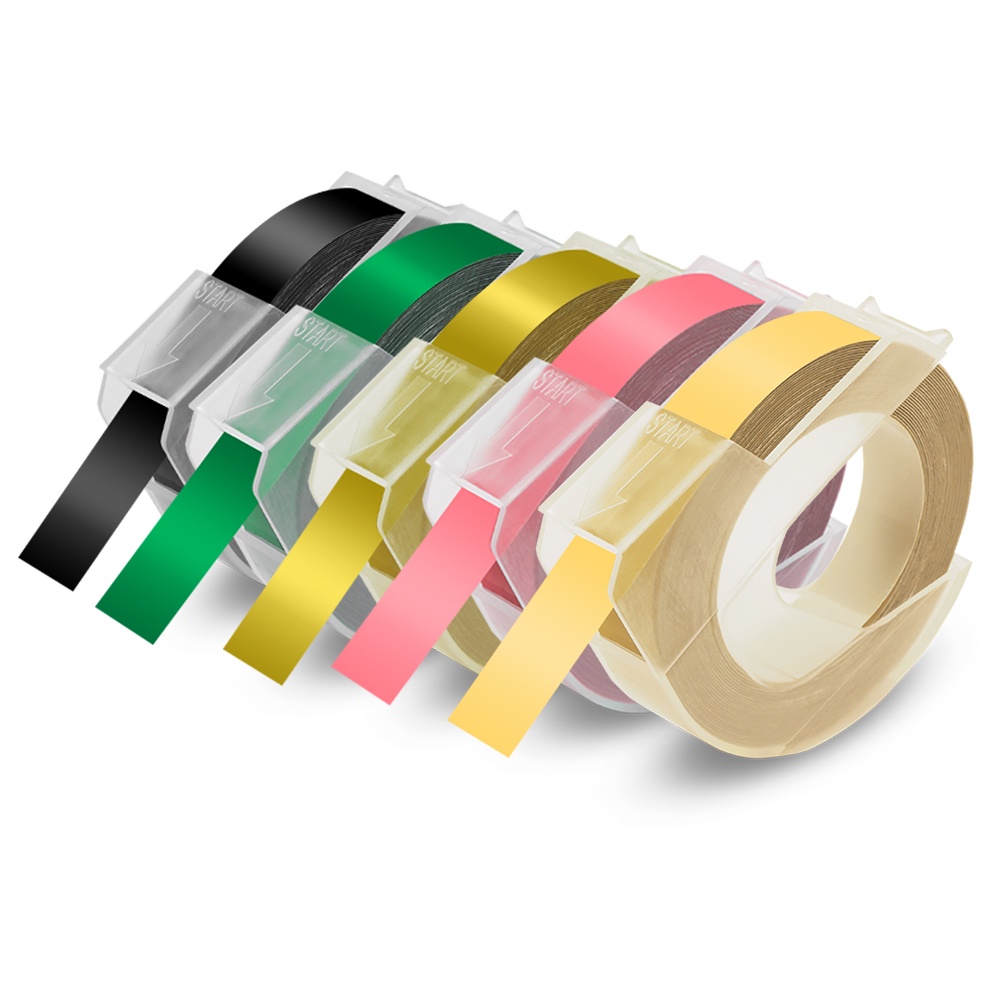 5PCS Compatible Motex / Dymo Embossing Tape Refill 3D Label Tape 9mm x 3m for Dymo Embossing Label Maker Manual 12965 Organizer Xpress Junoir Embosser 1880 1610 Motex E-101 E-303 Embossing Printer