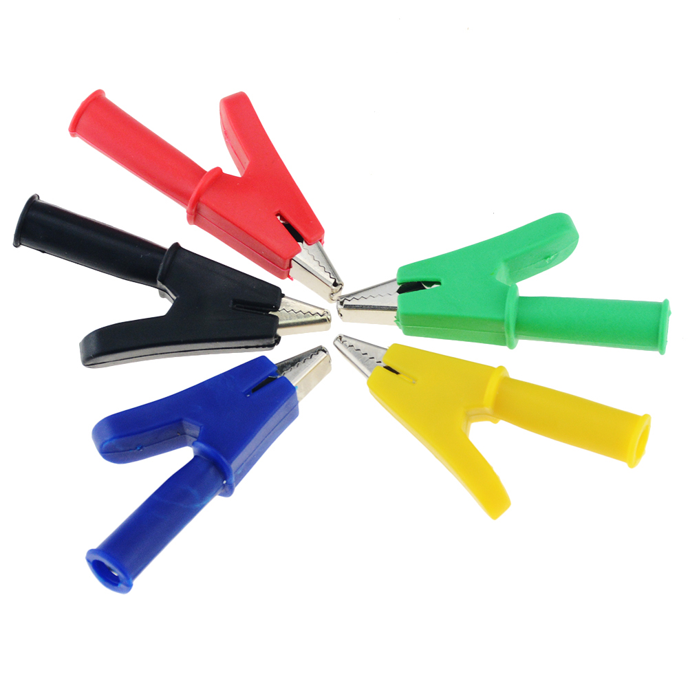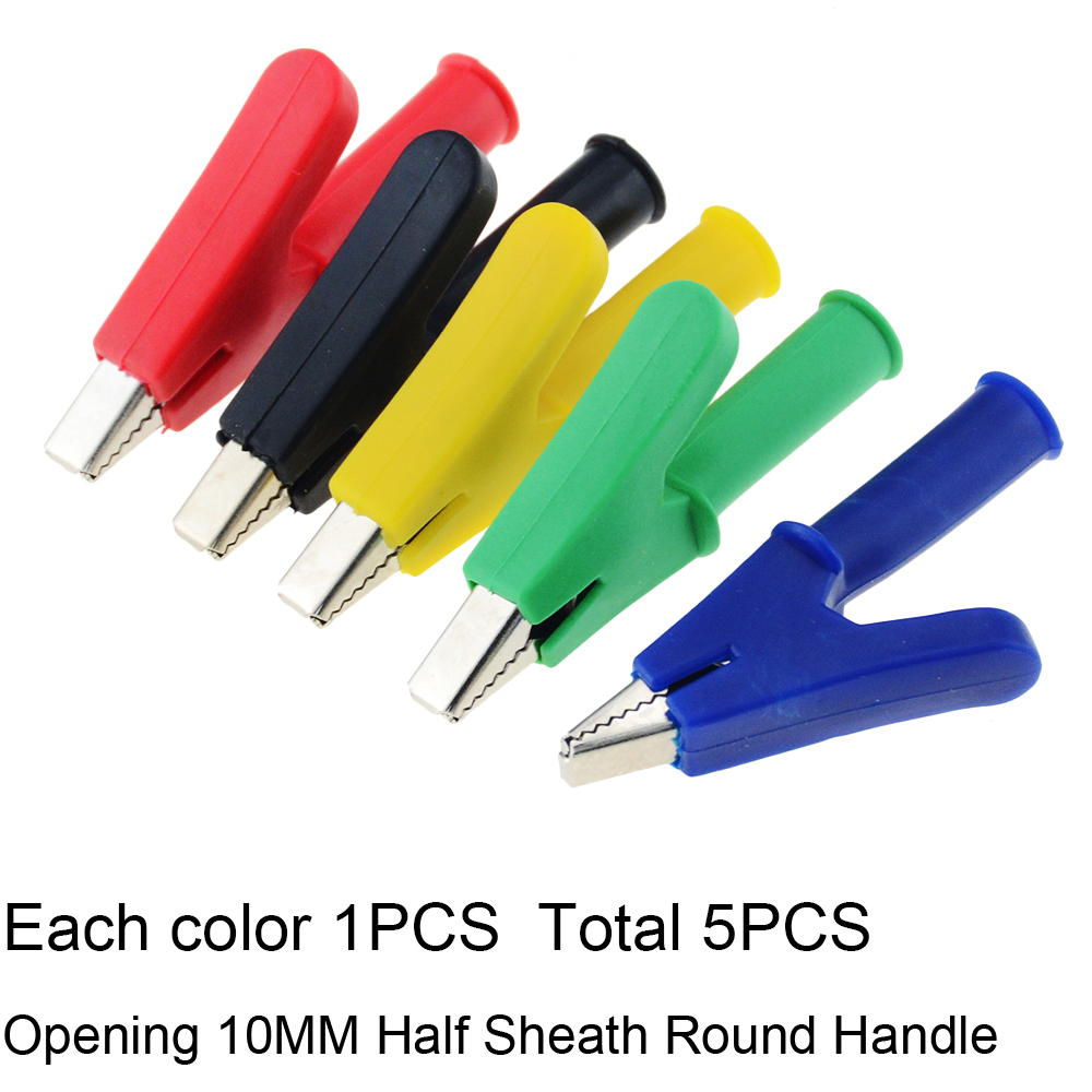5PCS Half Sheath Round Handle Crocodile Test Adapter Clip Probe Pen Test Alligator 4mm Banana Plug Insulated Cable Opening 10MM