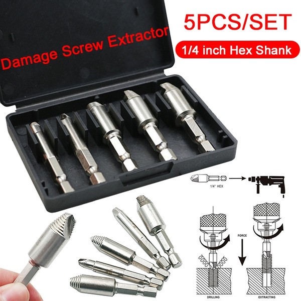 5PCS Heavy Duty Damaged Screw Extractor Set High Speed Steel Bolt Screw Remover Extractor