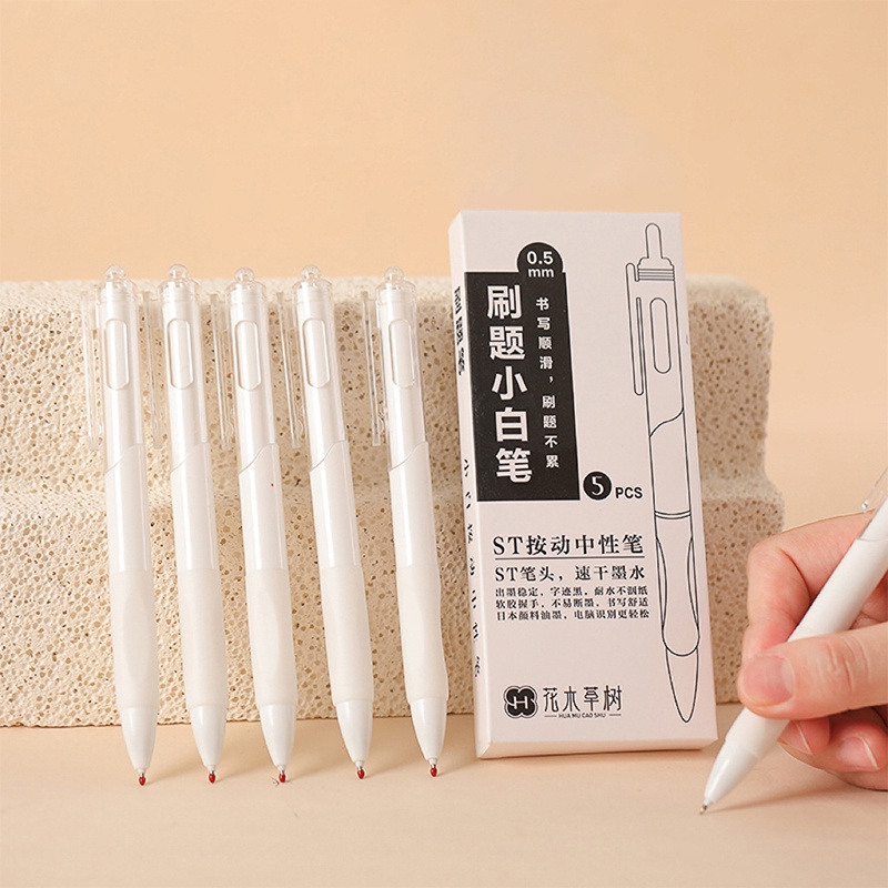5PCS Simple White Pressed Gel Pen 0.5mm Black Ink Pen Office Supplies Student Stationery