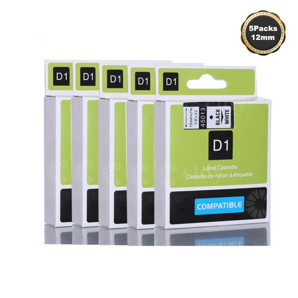 5PK 45013 Label Tape Black on White For Dymo D1 45010 45018 12mm Label Cartridge For Dymo LabelManager 160 280 210D Label Maker