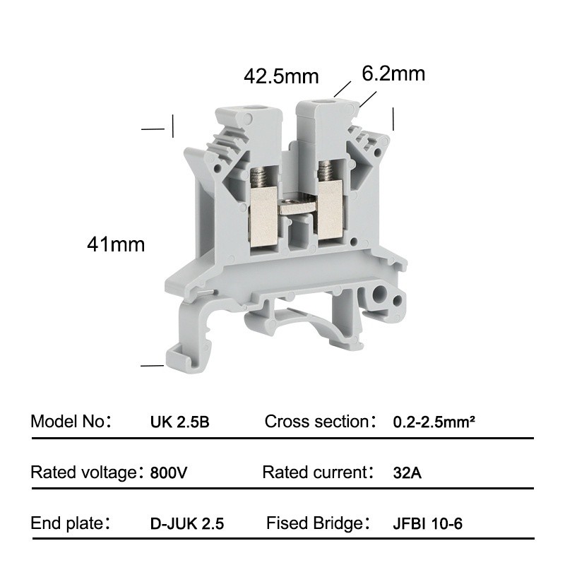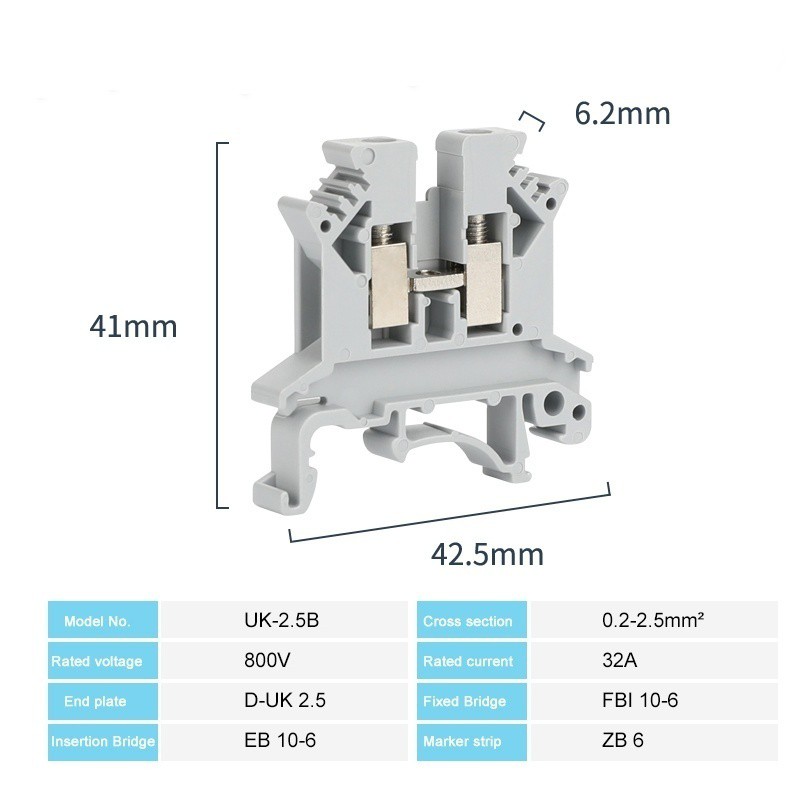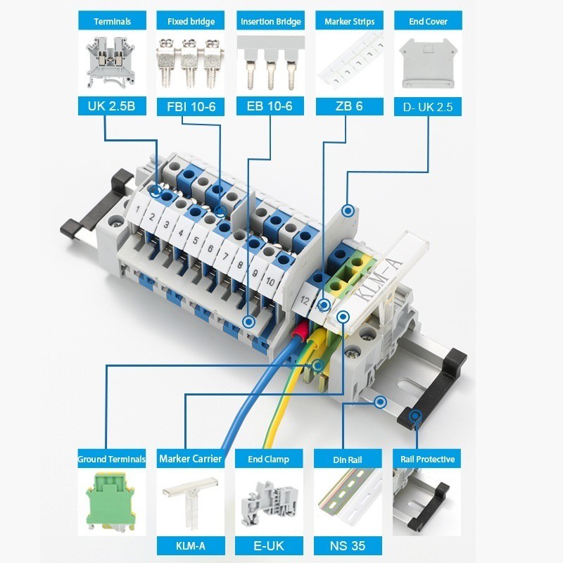 5Pcs Din Rail Terminal Block UK-2.5B Wire Electrical Conductor Universal Connector Screw Connection Terminal Stri