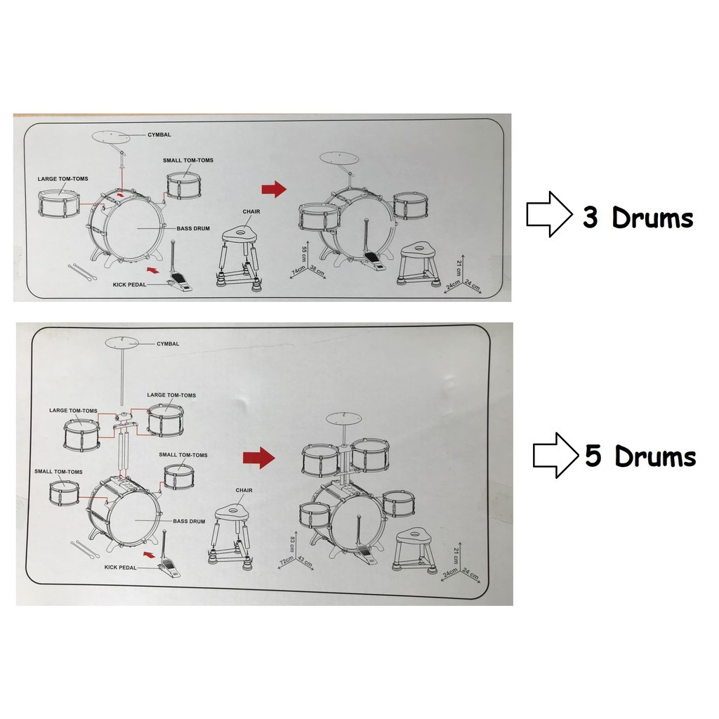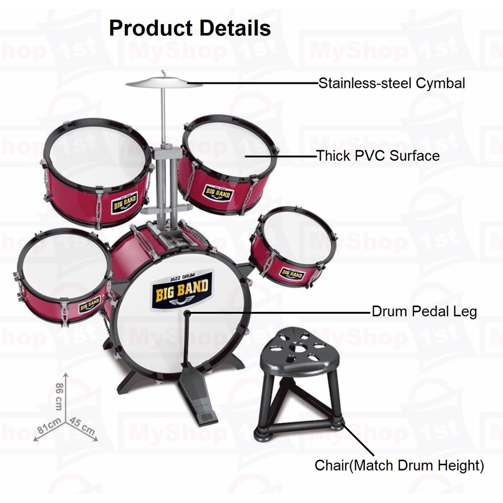 5Pcs Kids Drum Set Big Set Music Children Jazz Drum Rock Band Educational Instrument Toy Musical Toy Dram Mainan Budak