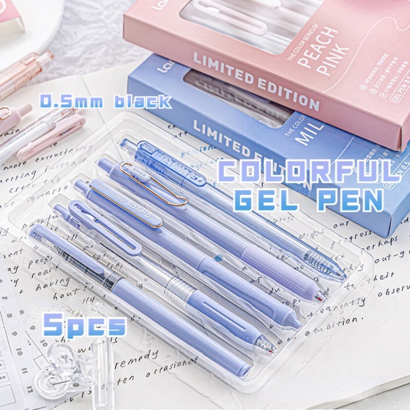 5Pcs 0.5mm INS Press Gel Pen Set - Smooth, Quick-Drying Black Ink Ballpoint Pens with ST Tips, Perfect Office