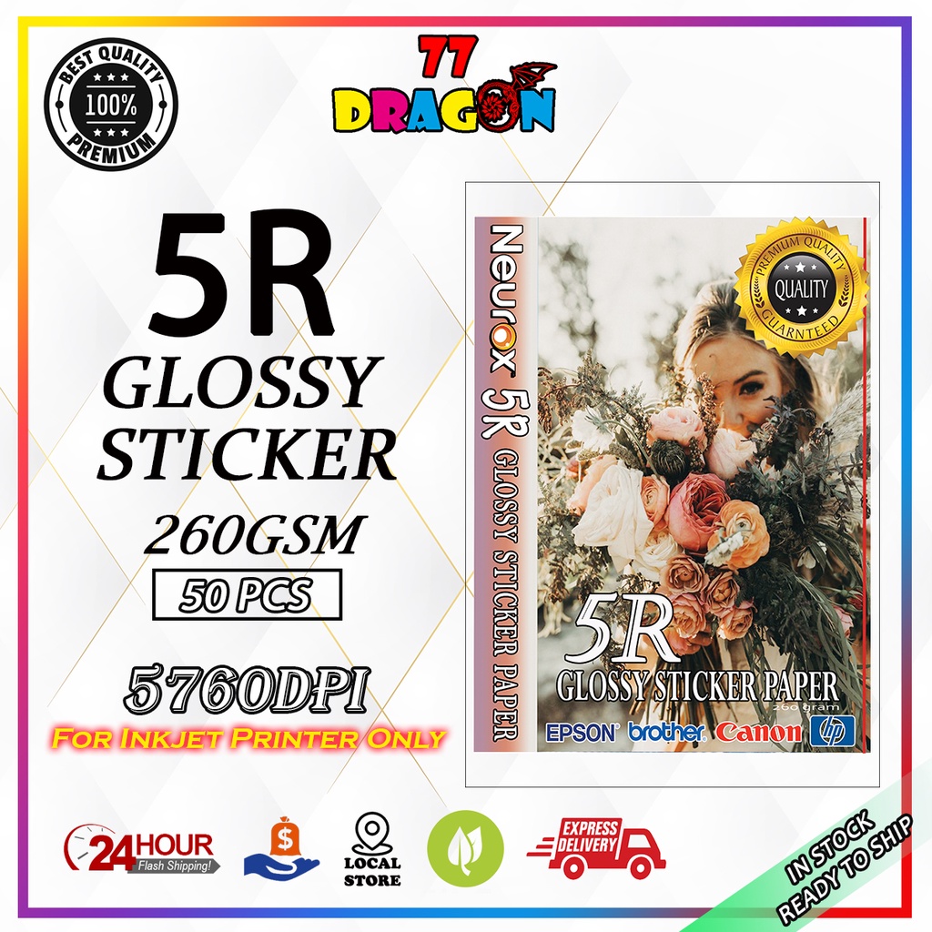 5R GLOSSY STICKER PAPER 50PCS/PKT (260GSM)