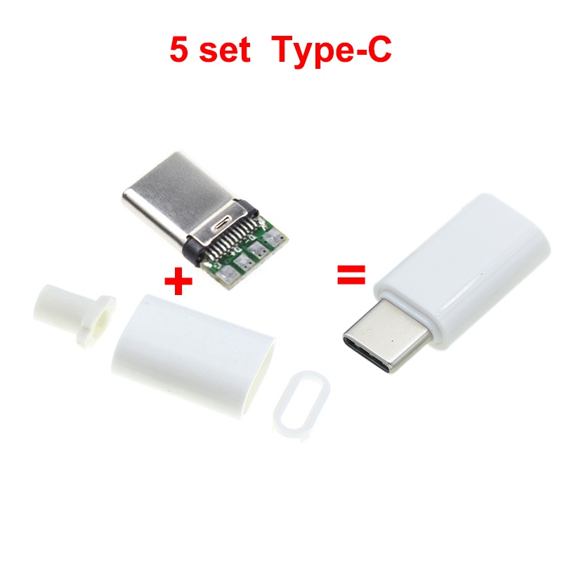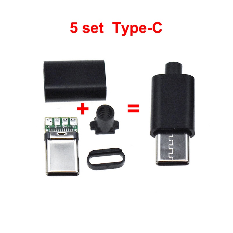 5Set Type-C Mirco USB Connectors Male Jack Tail Plug Electric Terminals Conector Case Phone